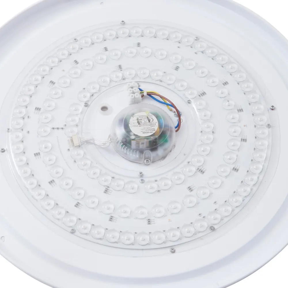 Intelligent Innes LED-loftlampe lavet af træ og plast Den smarte Innes LED-loftlampe kombinerer moderne design med intelligent teknologi. Det runde armatur er fremstillet af en kombination af plast og træ og passer perfekt ind i ethvert rum. Med CCT- og RGB-funktionerne kan farvetemperaturen indstilles mellem 3.000 K og 6.500 K samt mange forskellige farver. Lysstyrken kan justeres individuelt ved hjælp af dæmpningsfunktionen for at skabe en hyggelig atmosfære eller sikre optimal belysning. Lyset styres via den gratis Tuya-app, som findes til både iOS og Android. På den måde kan du nemt styre belysningen fra din smartphone eller tablet og justere den efter dine behov.
