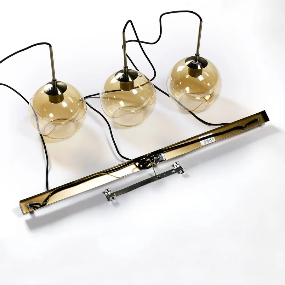 Sofian hængelampe med ravfarvede kugleformede glasskærme, 3 lyskilder Sofian imponerer med et meget hyggeligt lysmønster og et moderne helhedsindtryk. Hængelampen er udstyret med tre lampeskærme, der alle ser ens ud og har en ravfarvet overflade, der skinner smukt og bidrager meget væsentligt til en særlig hyggelig rumatmosfære. Takket være ravfarven trænger lyset ind i omgivelserne på en meget hyggelig og varm måde. Fatningerne kan udstyres med lamper efter eget valg, og du er også velkommen til at bruge lamper, der har integreret moderne LED-pærer. Der findes nu også særligt stilfulde glødelamper og rustikke lamper, som tydeligt minder om de klassiske glødepærer.