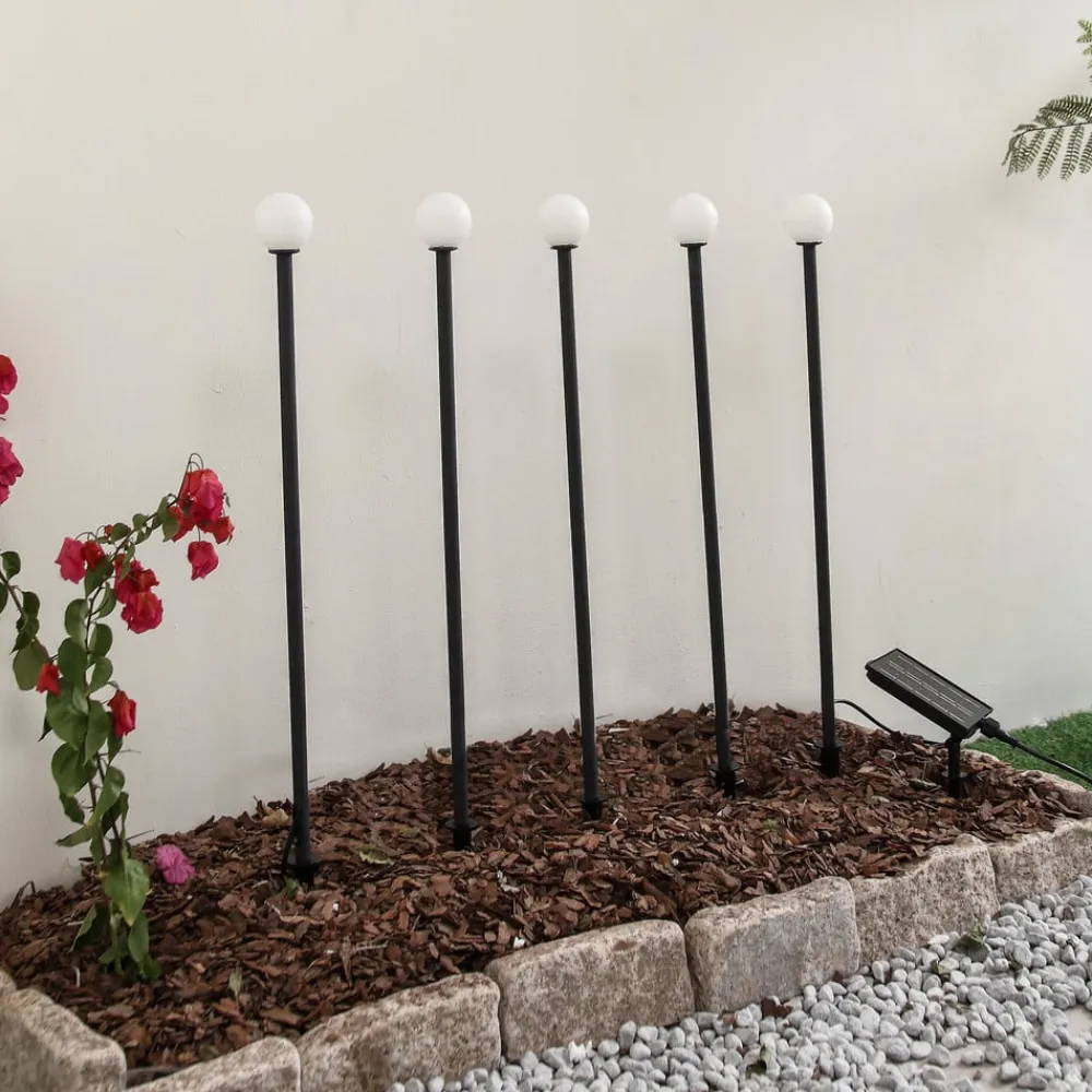 Lindby LED-solcellelampe Freydis, sæt med 5, sort, 2.000 K