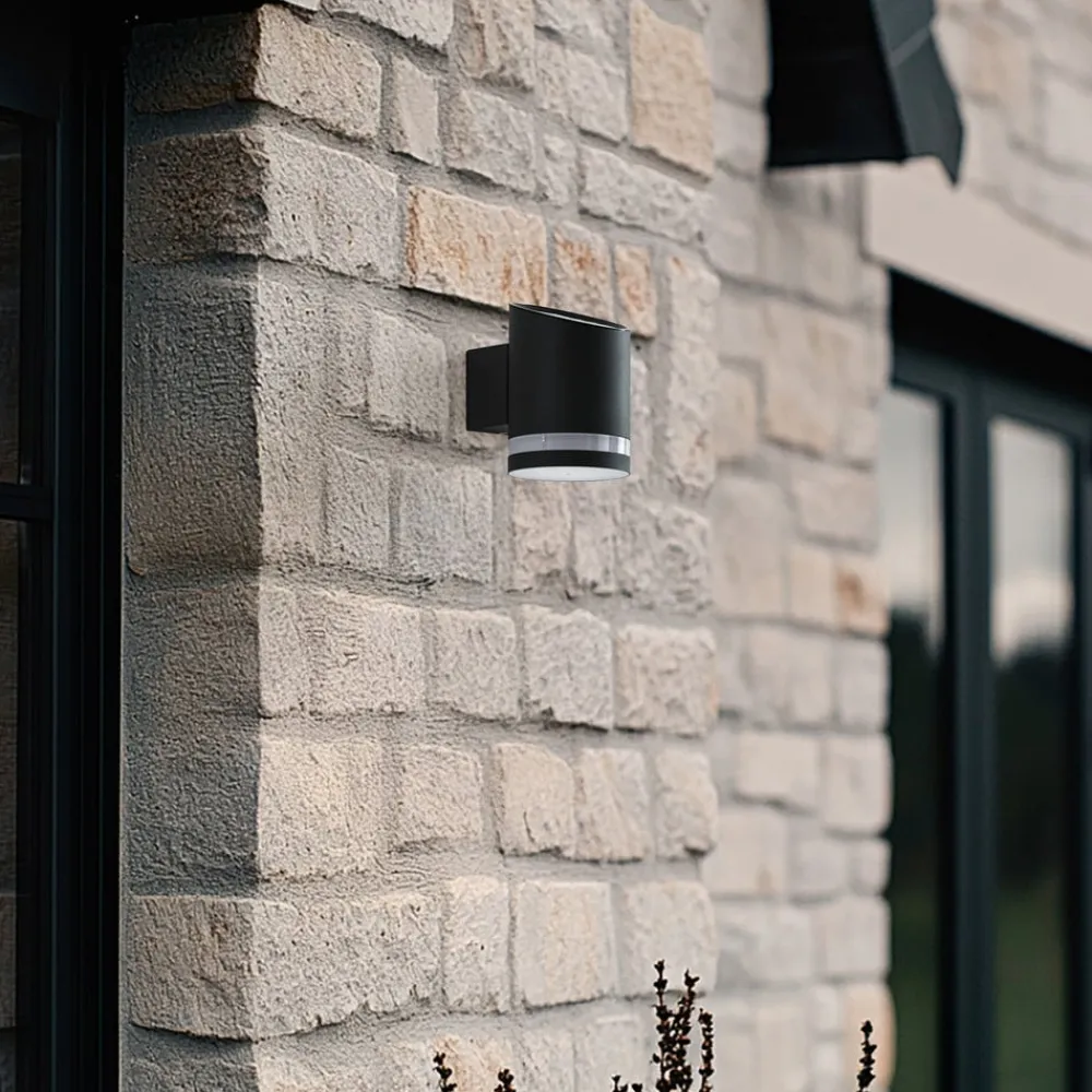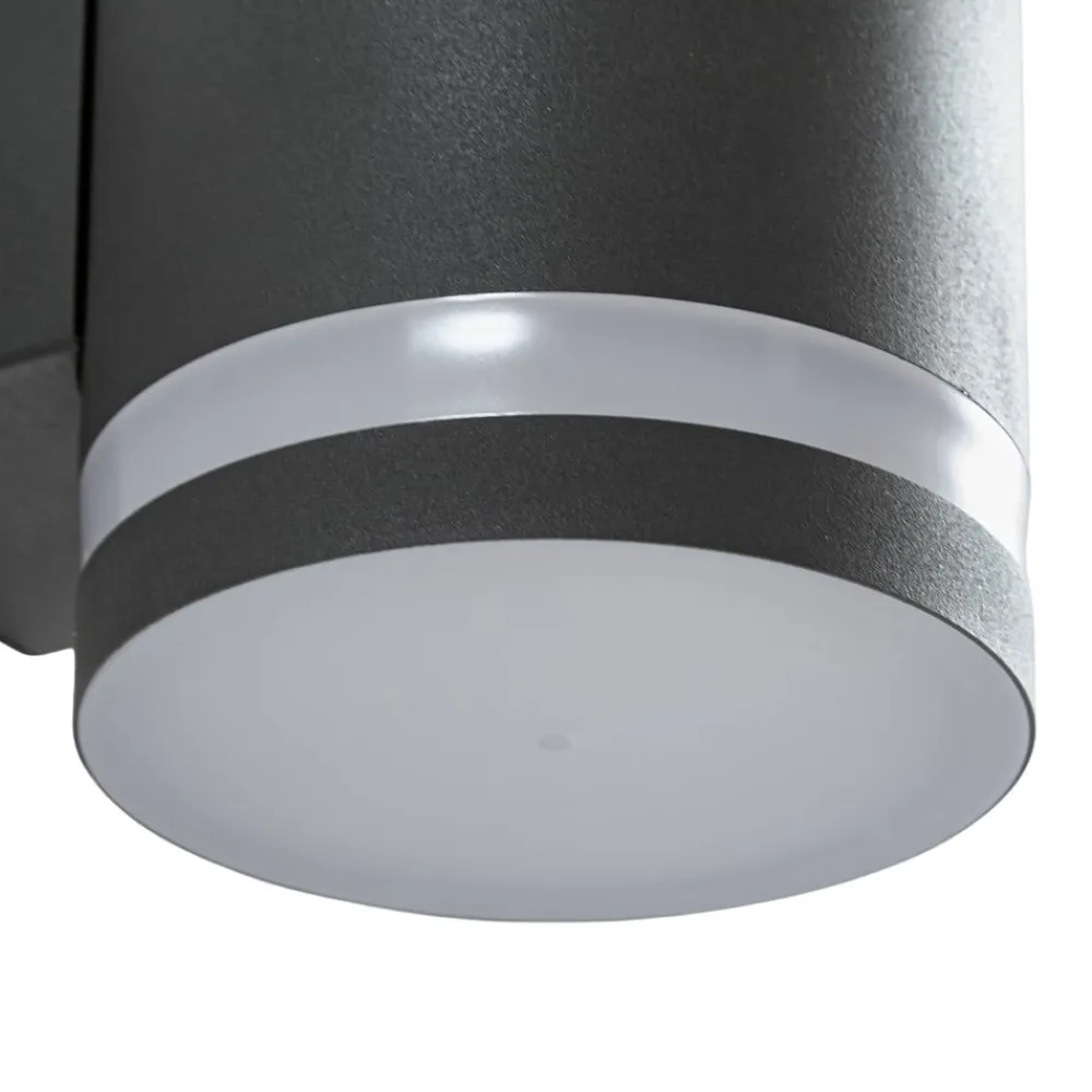 Antracitfarvet solcellevæglampe Bentlas i rustfrit stål, LED-drevet Denne LED-væglampe gør det muligt at skabe lys i forskellige udendørs miljøer, selv om der f.eks. ikke er nogen strømkilde eller tilslutning til elnettet. Det er muligt, fordi lampen har et integreret solpanel på toppen, som først omdanner sollyset til elektricitet og derefter til lys. Det betyder, at Bentlas også kan bruges på en smuk havegrund og f.eks. fastgøres til en lille hytte for at give lys, når der er brug for det, og det allerede er mørkt. Den antracitfarvede overflade og den cylindriske form har et behageligt tidløst look, og solcellelampen Bentlas er designet til at fungere i to lystilstande, så lyset kan skinne med fuld eller reduceret intensitet. Afhængigt af hvad du vælger, varierer den maksimale lysvarighed mellem 20 og 35 timer, når batteriet er fuldt opladet.