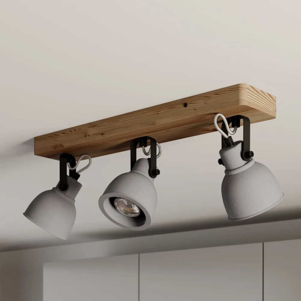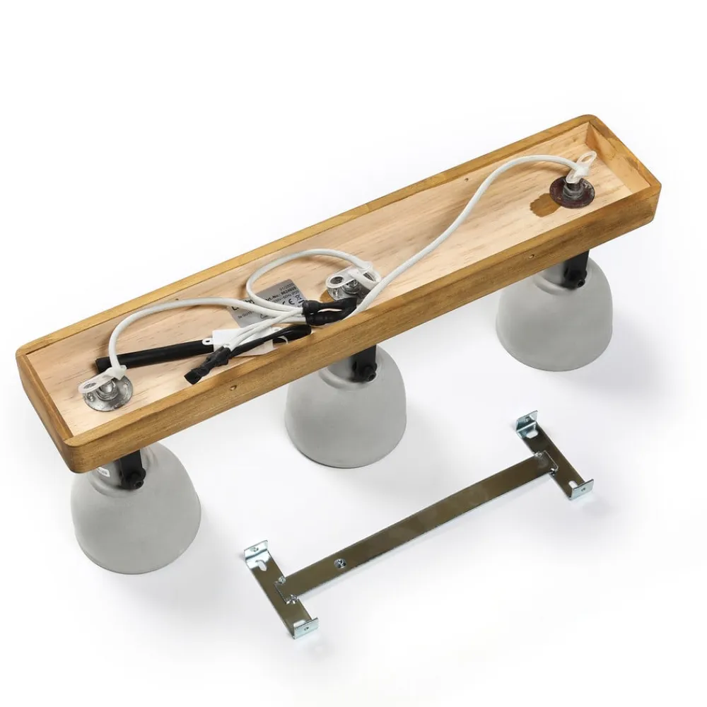 Lindby Spot Mitis, 50 cm, 3 lyskilder, grå, træ, beton, GU10