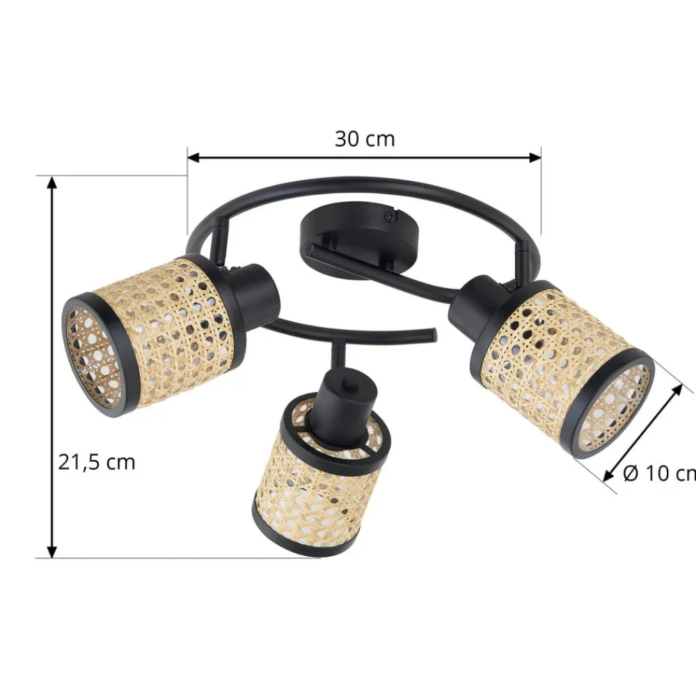 Lindby Spotlights>spot Yaelle, Ø 30 cm, 3 lyskilder, rattan, sort, E27