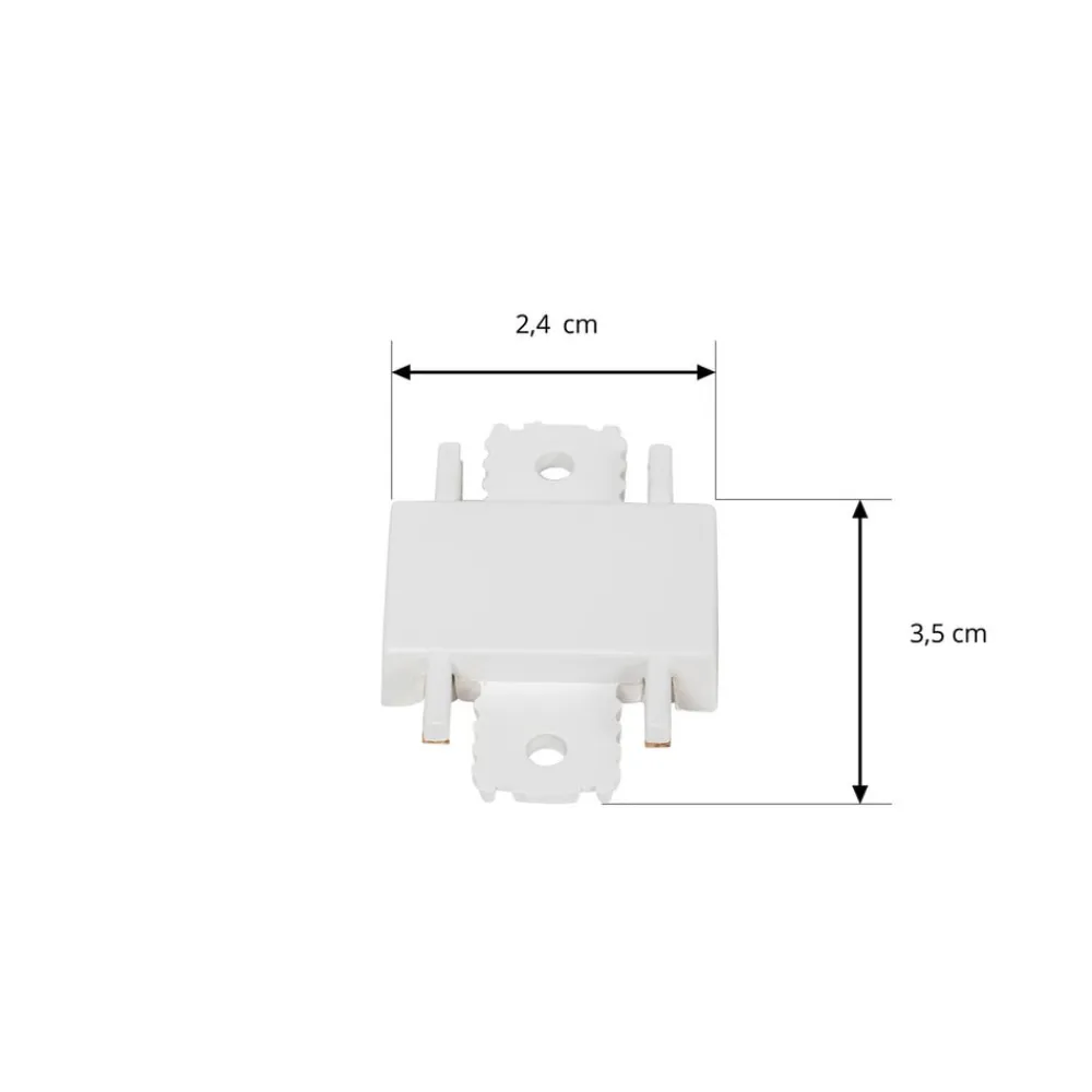 Lumaro-stik i hvid plast Med dette stik kan du kombinere de enkelte komponenter i Lumaro-skinnesystemet. Der medfølger to stik. Bemærk, at Lumaro-skinnesystemet kun er kompatibelt med tilbehør fra Lumaro-serien. For at undgå forveksling med andre systemer må du kun kombinere tilbehør og skinnesystemer fra serien med samme navn.