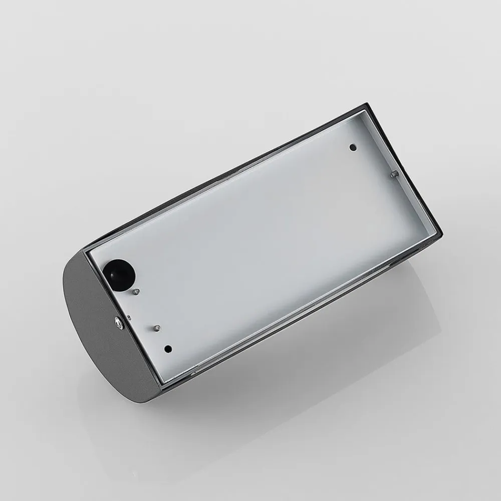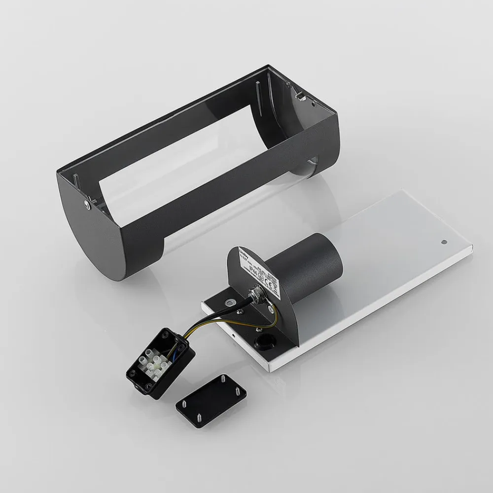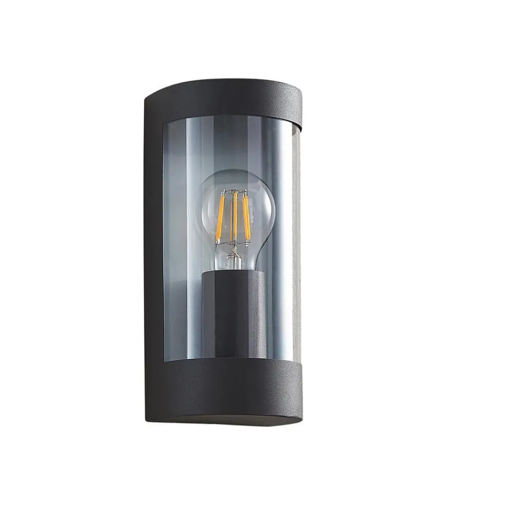 Junias er en smuk, diskret væglampe til det moderne udendørsområde. Den drives med en E27-pære efter eget valg, hvor stilfulde filamentpærer er særligt velegnede, fordi pæren altid er godt synlig på grund af det klare polycarbonat. Armaturet er halvrundt og mørkegråt, hvilket passer til mange udendørs miljøer og gør den udendørs væglampe Junias til en smuk allrounder.