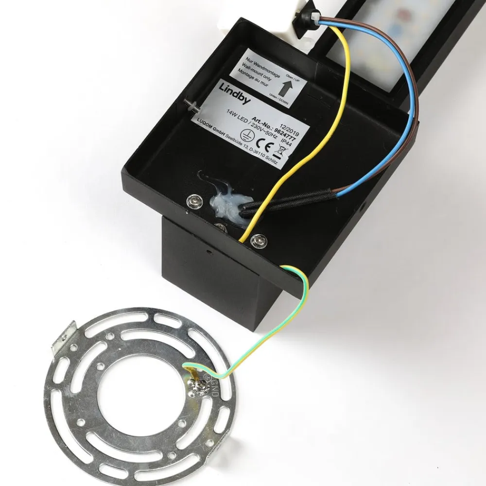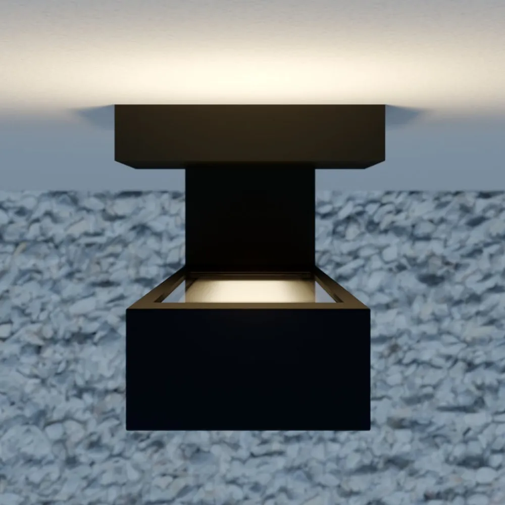 Lampekroppen på udendørslampen er konstrueret i en moderne form. Lampen er meget retlinet og geometrisk, og ser fra siden ud som et kæmpe stort L. Det fungerer rigtig godt f.eks. på en husfacade. De indbyggede LED’er er kraftfulde, energieffektive og varmehvide, og sidder bag en frostet glasrude på lampens bagside. De er således beskyttet mod al slags vind og vejr. De lyser på væggen i mørket og skaber et indirekte orienteringslys.