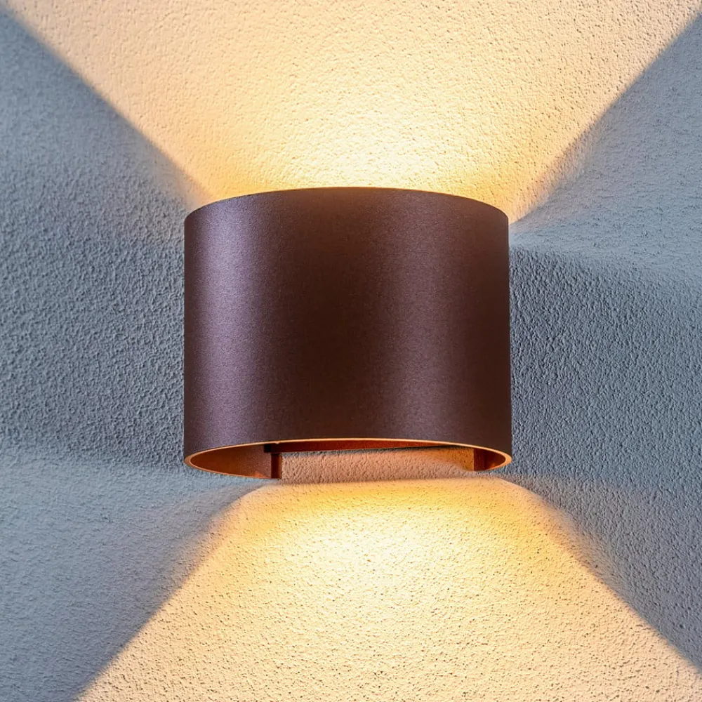 Lindby Terrassebelysning|Væglamper>LED udendørs væglampe Nivar, rund, rust, metal, IP54