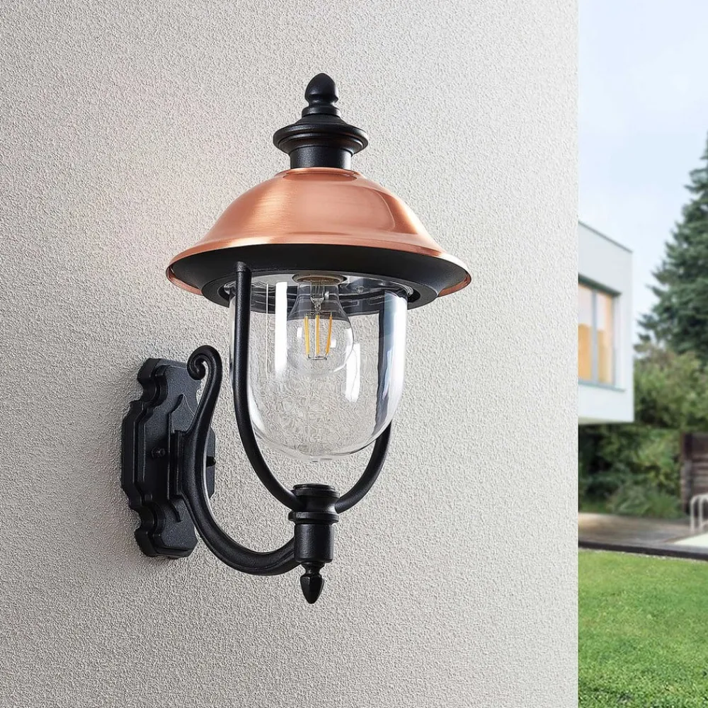 Udendørs væglampe Clint med kobbertag, saltvandsresistent