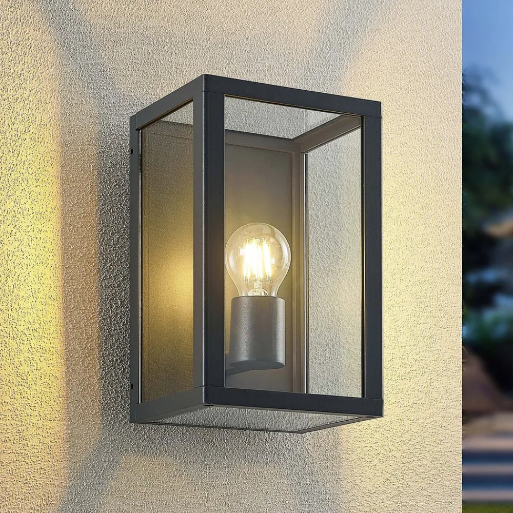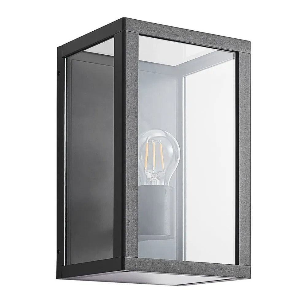Giavanna kantet udendørs væglampe af aluminium og glas i antracit Giavanna er en markant udendørs væglampe, der skaber iøjnefaldende accenter på husmure. Den har en kubisk lampekrop med glasvægge, bag hvilken der sidder en E27-fatning. Denne fatning kan udstyres med passende lyskilder, så lysintensiteten og lysfarven kan tilpasses personlige behov. Den udendørs væglampe Giavanna formår at oplyse et hus og et udendørs område perfekt, selv i mørke. Den kan kombineres med andre lamper i serien efter behov.