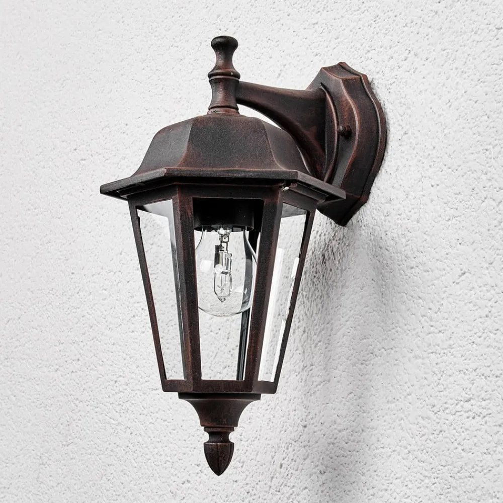Lamina – udendørs væglampe med nostalgisk karakter Den nostalgiske skærm på denne udendørs væglampe, som kommer i en ret klassisk stil, er rettet nedad og er udstyret med en E27-pære. Der er et stort udvalg af pærer at vælge imellem, da markedet efterhånden har meget at byde på i denne henseende. Det er ikke kun de klassiske gløde- eller halogenpærer, der findes, men man kan også bruge de mere energieffektive LED- og sparepærer, som er meget mere skånsomme for pengepungen med hensyn til elforbrug. Den øverste del af den udendørs væglampe har en slags tag med seks glasruder i siderne, som lader lyset slippe uhindret ud takket være deres klare overflade og ikke tager noget af lysstyrken fra det.