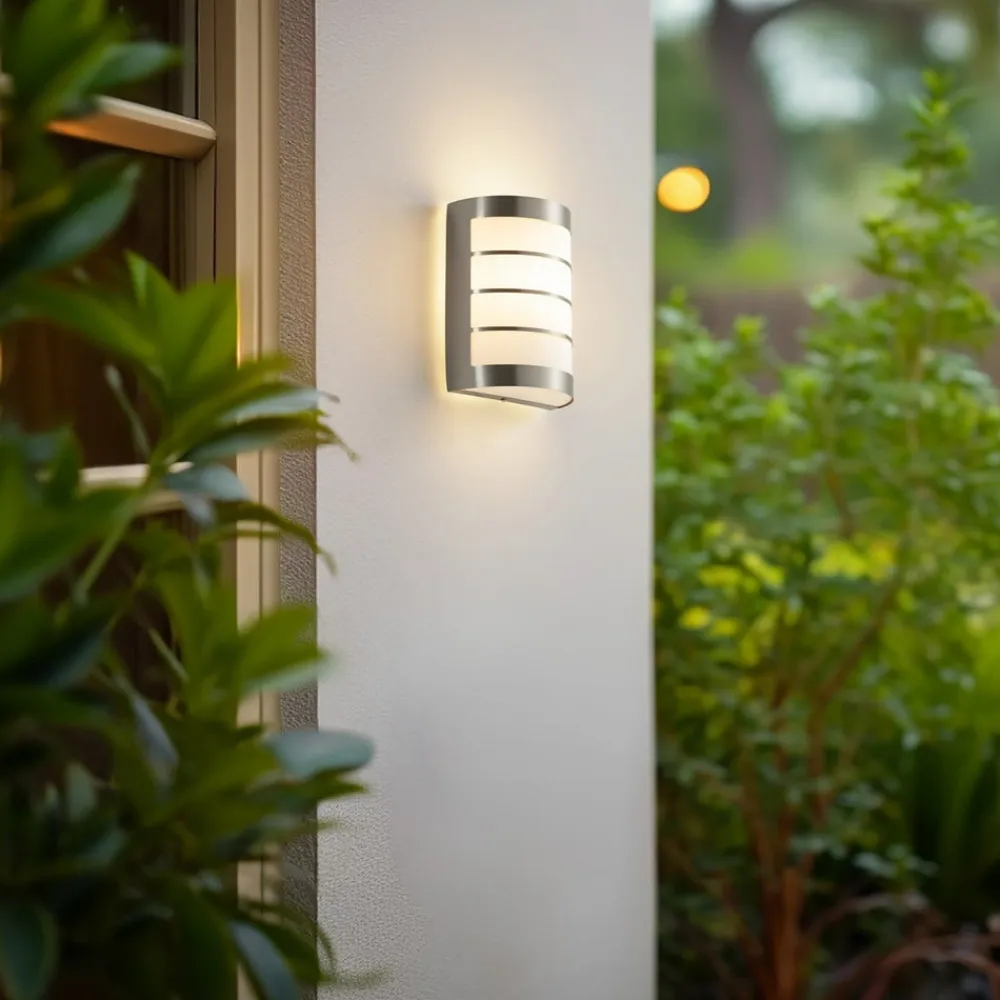 Udendørs væglampe i stål Noyan med et smukt stribet design
