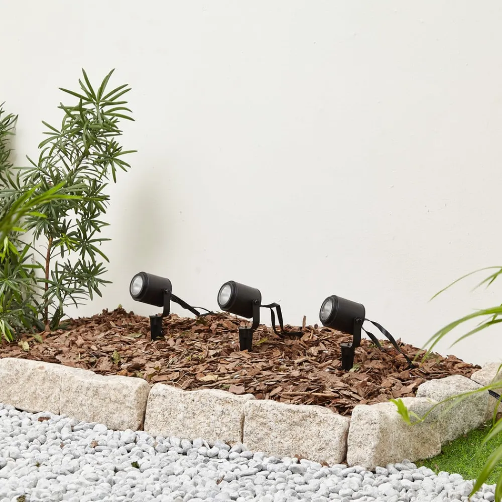 Lindby Udendørs Spot>Smart LED udendørsspot Nymo, CCT, RGB, Tuya, sæt med 3 stk