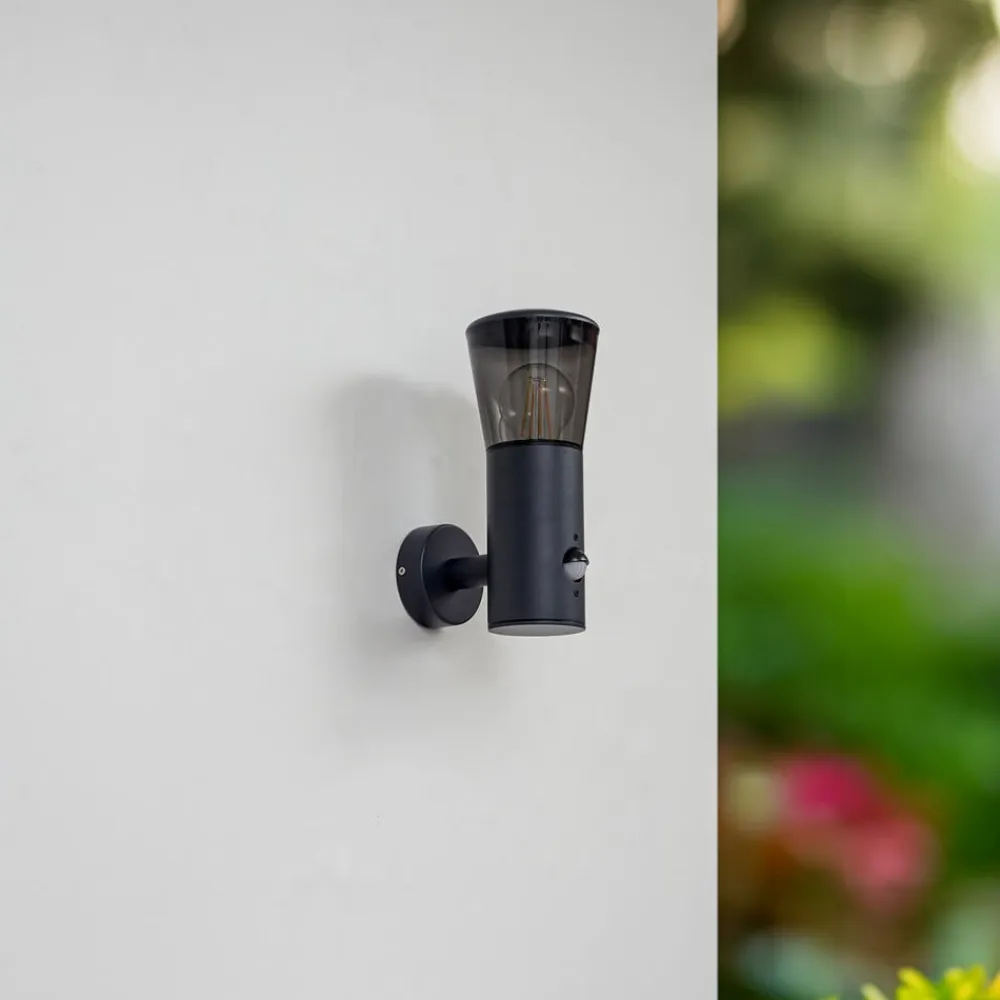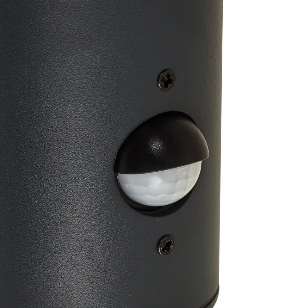Lindby udendørs væglampe Heulo, Ø 10,5 cm, røggrå, sensor