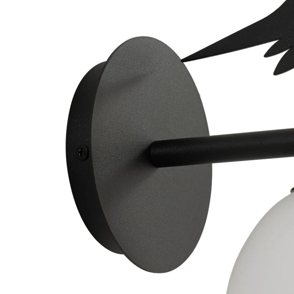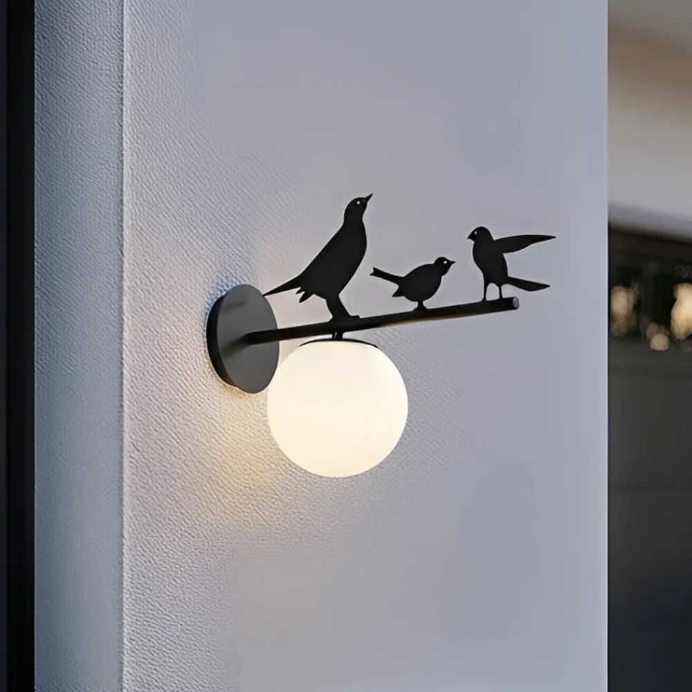 Udendørs væglampe Lintu i sort metal med dekorative elementer i fugleoptik