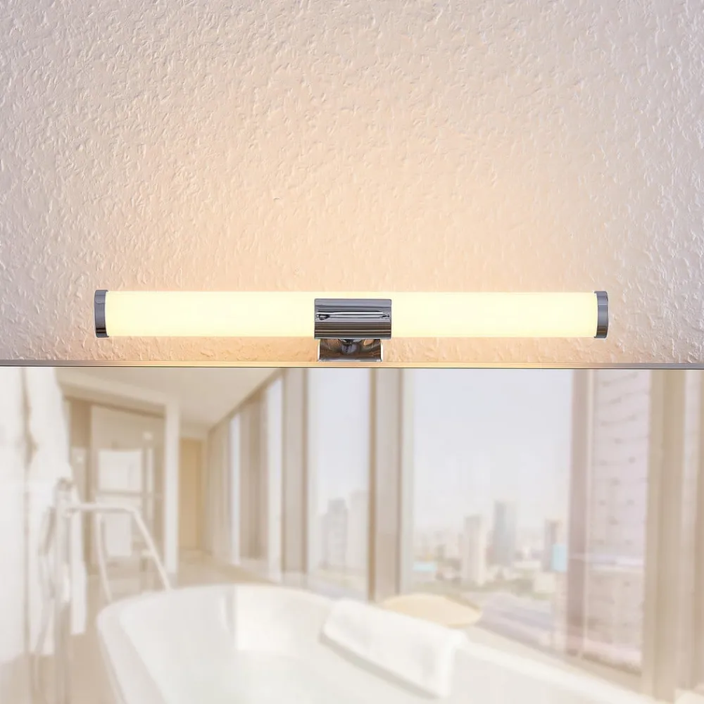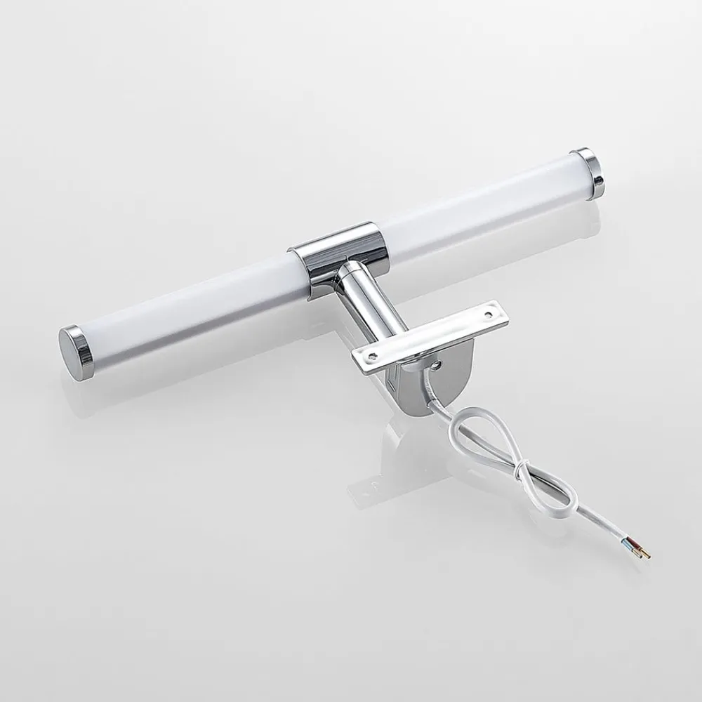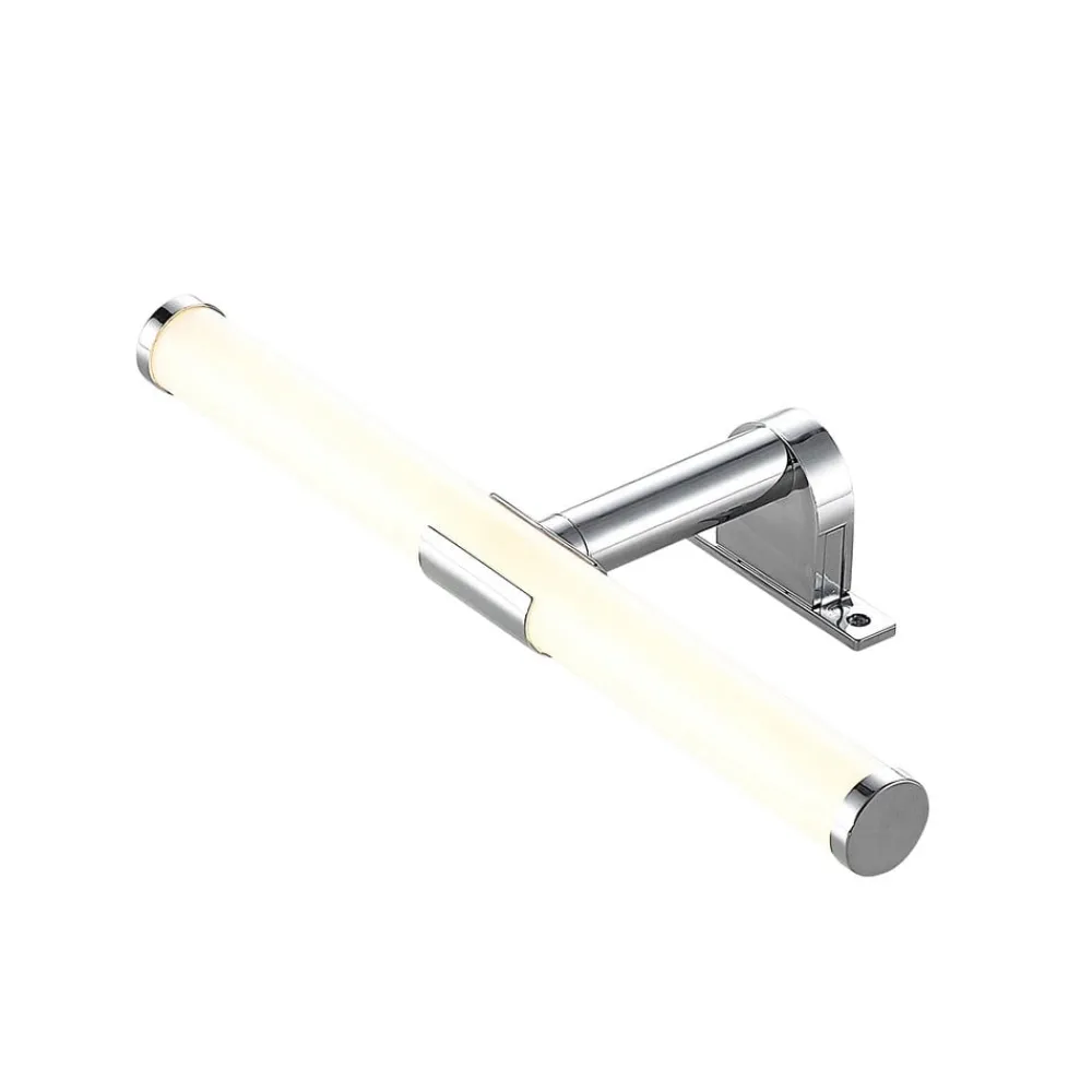 “Spejl, spejl på væggen, hvem er den smukkeste af dem alle?” For at kunne besvare dette spørgsmål fyldestgørende er det nødvendigt med en effektiv spejlbelysning i badeværelset. LED-spejllampen Naili er med sine varmt hvide LED’er perfekt egnet til dette formål og kan monteres på spejlet på ingen tid med to skruer. Intet står i vejen for dens anvendelse på badeværelset med IP44, men lampen gør også en god figur over spejlet i gangen.