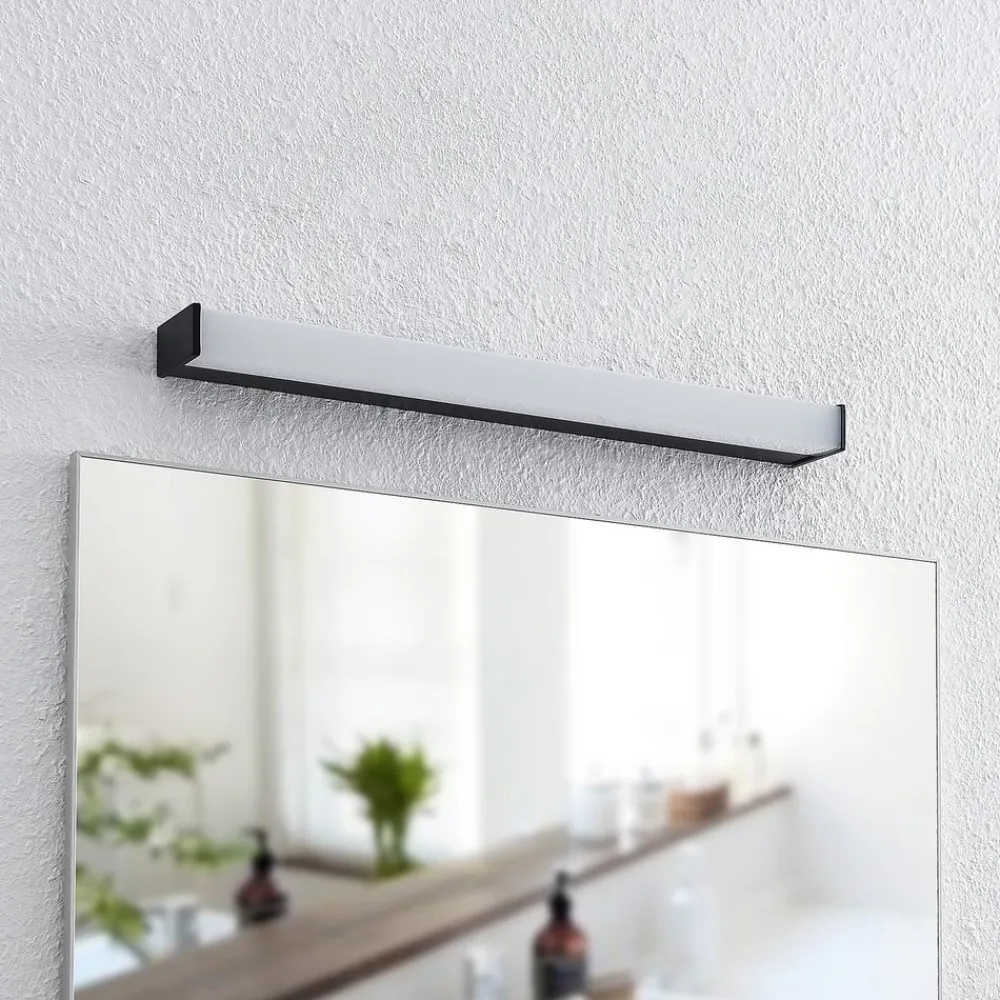 LED-badeværelsesvæglampen Ulisan præsenterer sig selv i sin kantede udgave og imponerer med et design i sort og hvidt. Mens metalhuset var dækket af en mørk overfladefinish, var lampeskærmen lavet af lys akryl. Dette sikrer en blændfri udstråling i rummet. LED’erne udsender et varmt hvidt lys, der er behageligt for øjnene – ideelt til brug over et spejl på badeværelset.