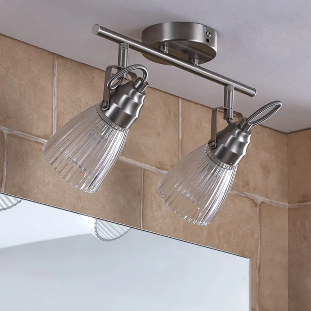 Væglampe til badeværelset Kara med 2 lyskilder og riflede, klare glasskærme til G9-pærer
