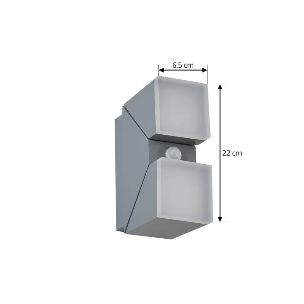 Lindby LED-væglampe Sally, 22 cm, grå, IP54, sensor