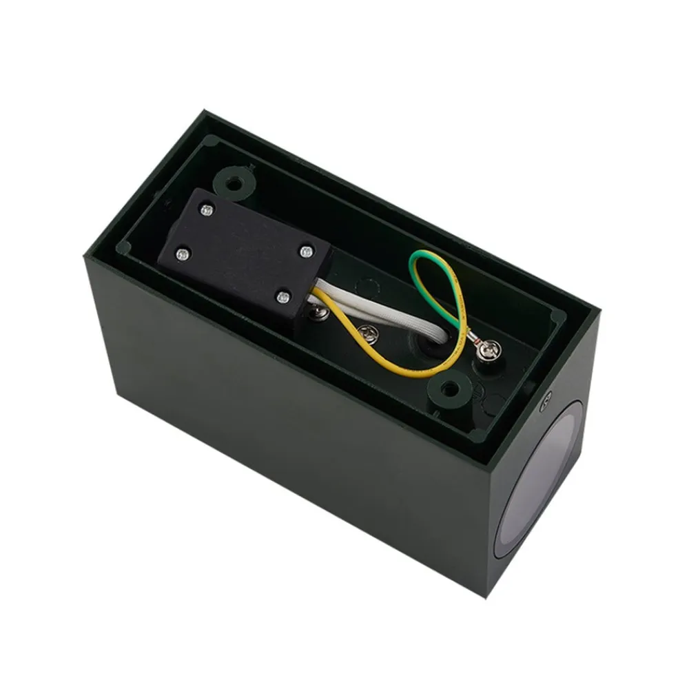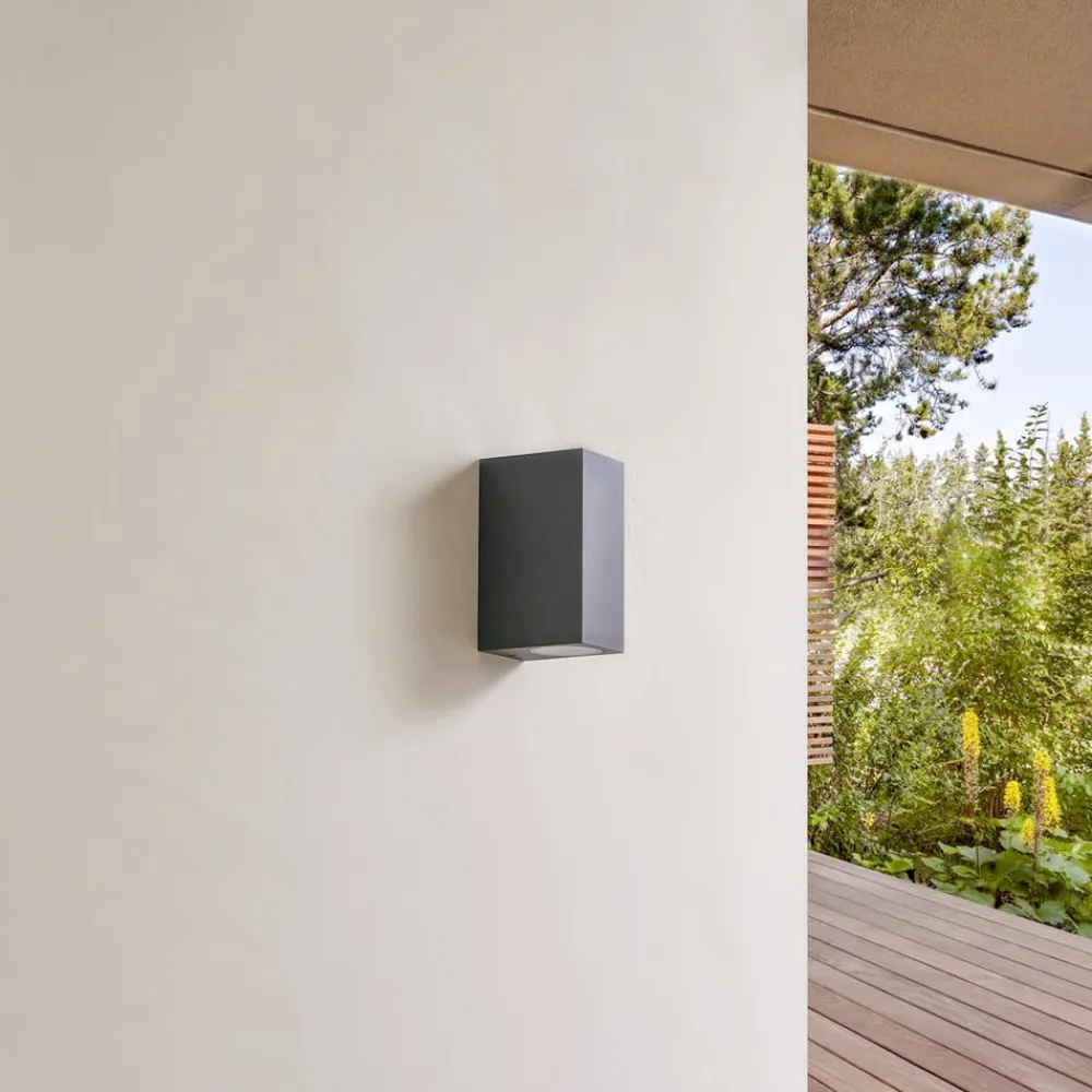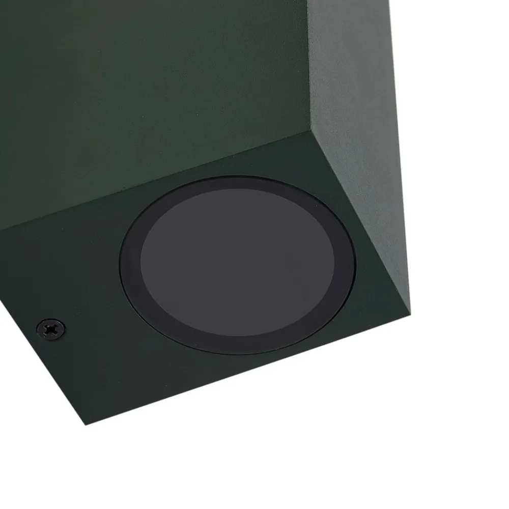 Udendørs væglampe Fijona en kantet følgesvend i slående mørkegrøn Den udendørs væglampe Fijona kombinerer både elegance og funktionalitet i sit design. Denne belysningsløsning er fremstillet af aluminium i høj kvalitet og imponerer med sin moderne stil, der passer perfekt ind i enhver facade. Den robuste konstruktion sikrer holdbarhed og modstandsdygtighed over for elementerne. Selvom der ikke medfølger en dæmper, kan lysstyrken på Fijona udendørs væglampe justeres, så den passer til individuelle behov, ved at tilslutte den til en ekstern dæmper (en dæmper medfølger ikke og skal købes separat). Det giver en stemningsfuld belysning, der bader udendørsområdet i et indbydende lys og samtidig skaber tryghed.