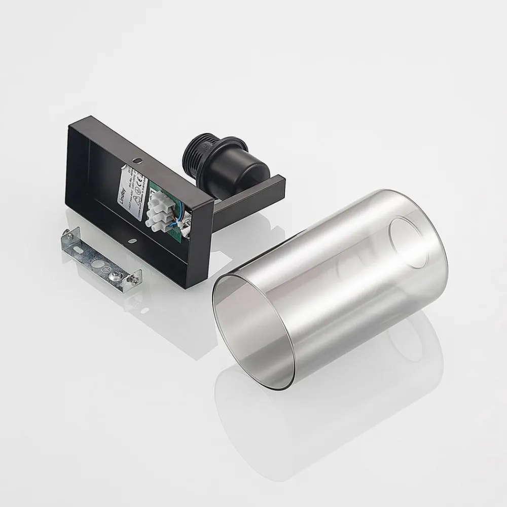 Lindby Væglamper|Væglamper>Emavi væglampe, sort/røggrå, glas, E27