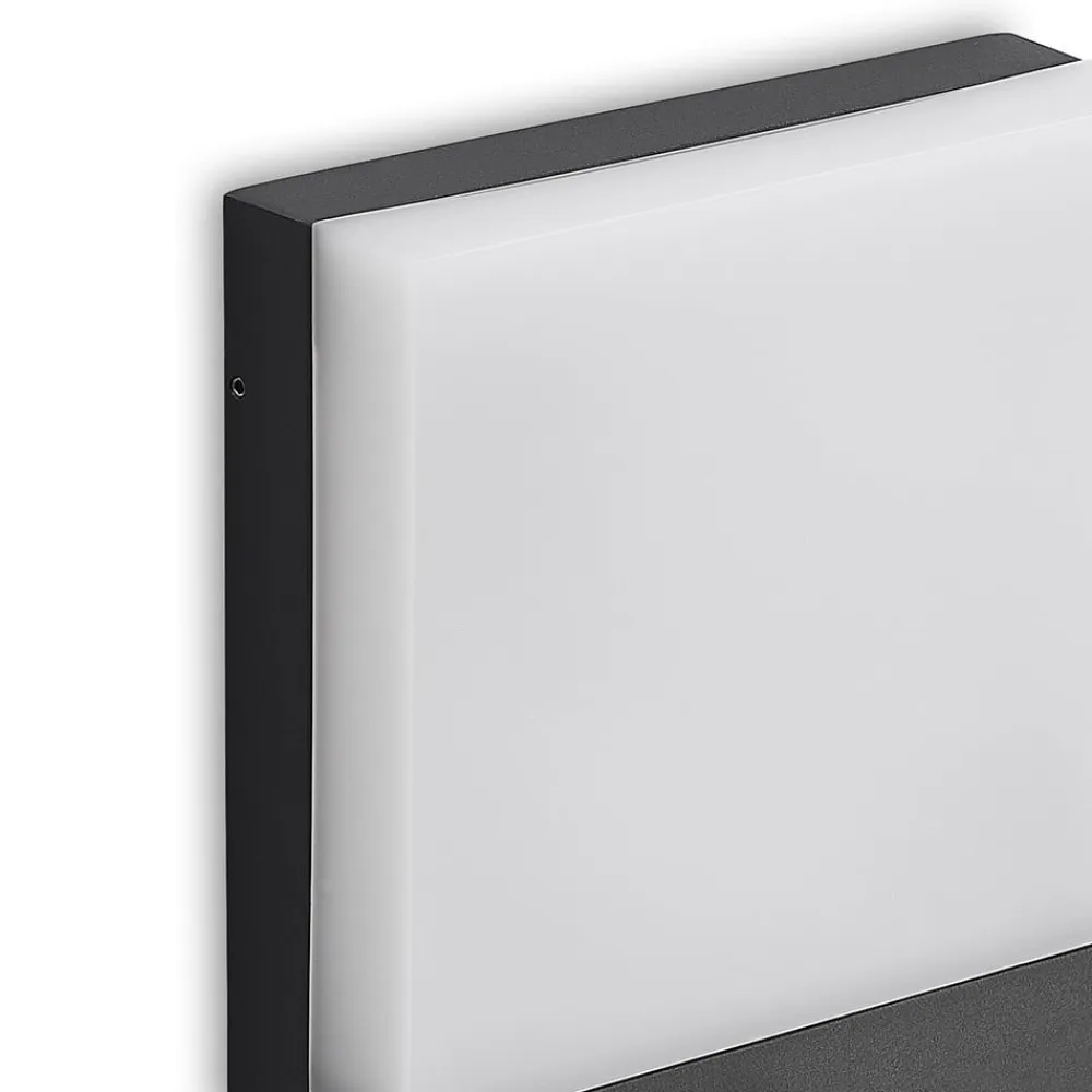 Vanira LED udendørs væglampe har et klart struktureret design. Dens kantede hus er lavet af aluminium, mens dets opalhvide lampeskærm er lavet af plast. Dette fungerer også som en diffusor og gør det muligt for lyset at komme blidt og jævnt frem.