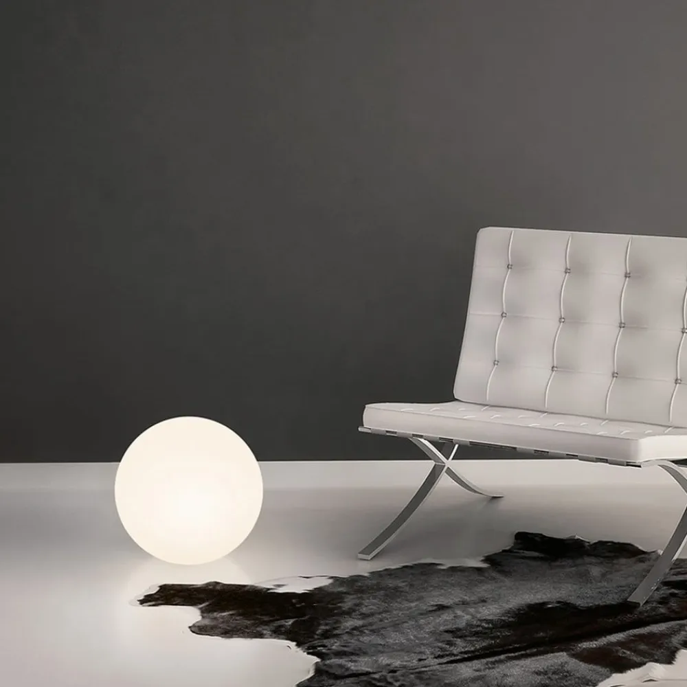 LED-gulvlampe Oh! – Kugleformet lampe til udendørs brug, E27 Cirklens magiske perfektion kombineres med lysets naturlighed for at skabe en elegant lyskugle. Oh! er en attraktiv gulvlampe med diffusor og E27-fatning, fremstillet af hvid polyethylen ved hjælp af rotationsstøbningsprocessen og med en glat, jævn overflade. En E27-stikdåse er installeret i diffusoren, som kan udstyres med en lyskilde efter eget valg. Oh! er perfekt som enkeltarmatur eller installeret i grupper. Den høje grad af beskyttelse mod støv og vandsprøjt gør også armaturet velegnet til udendørs områder som overdækkede terrasser, lysthuse eller haver.
