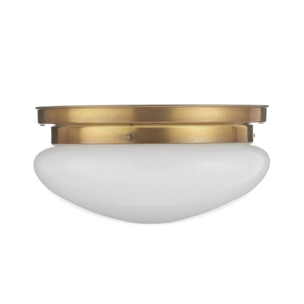 Rund loftslampe Harry med skinnende hvid glasskærmLoftslampen Harry er baseret på gamle mønstre og modeller fra omkring år 1900. Den er håndlavet og består hovedsageligt af dele i ren messing. Glasskærmen af blankt glas er mundblæst, mens den udsmykkede ramme har fået en særlig overfladebehandling, hvor en patina er indfarvet i messingen i stedet for at blive malet. Resultatet er et udseende, der næsten ikke kan skelnes fra den originale patina på antikke lamper. Til rengøring er en tør klud at foretrække; en let glans kan opnås ved at gnide med lidt olivenolie.