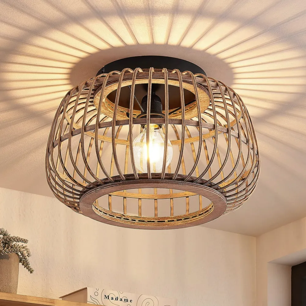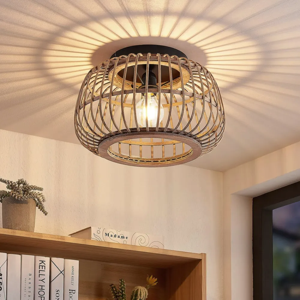 loftlampe Bominio, Ø 40 cm, rattan, træ, E27^Lindby Discount