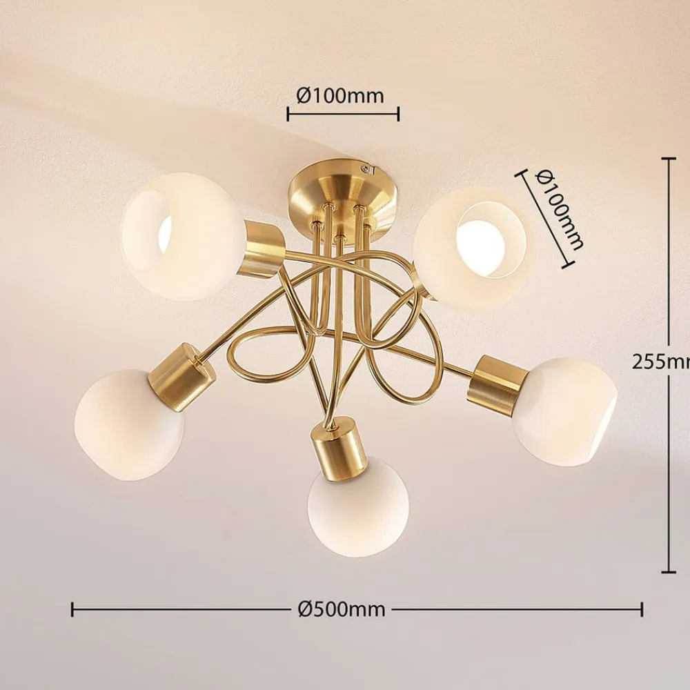 loftlampe Elaina, Ø50cm, 5 lyskilder, messing, glas, E14^Lindby Clearance