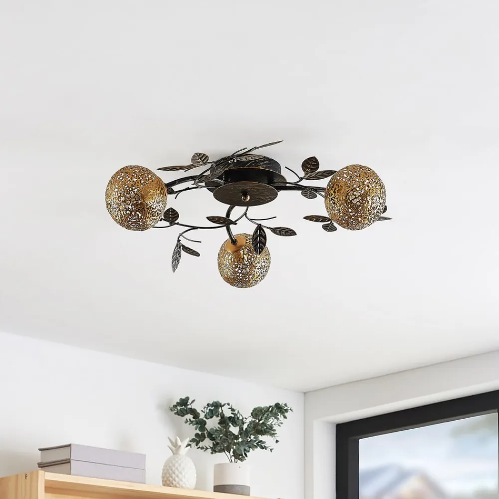 loftlampe Evory, Ø 53 cm, 3 lyskilder, sort/guld, G9^Lucande Clearance