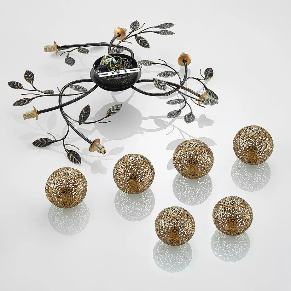 loftlampe Evory, Ø 69 cm, 6 lyskilder, sort/guld, G9^Lucande Discount
