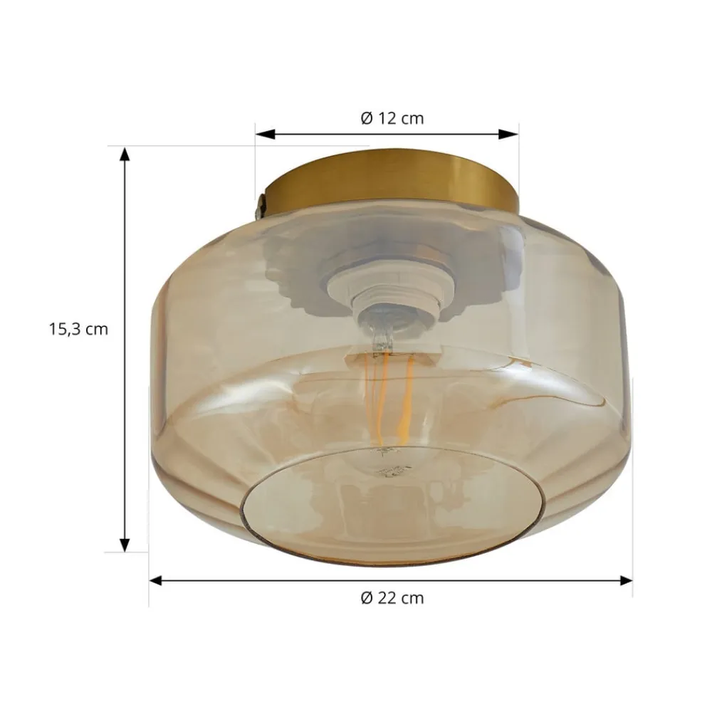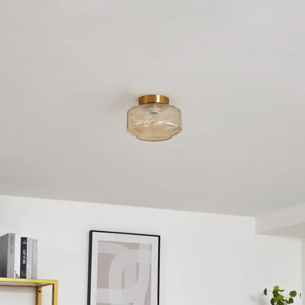 Amberfarvet loftlampe Hildur med grøn glasskærm