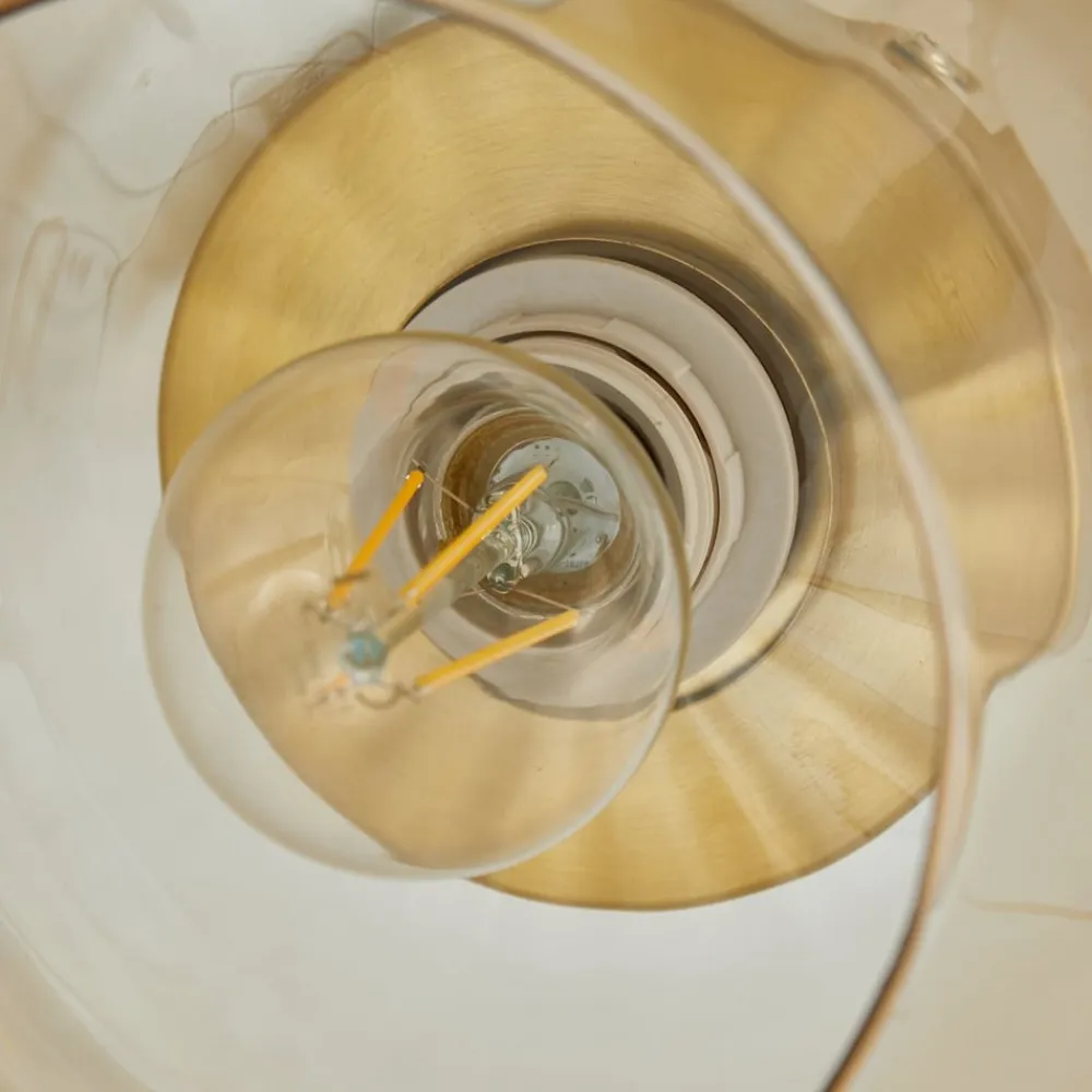Loftlampen Hildur kombinerer i sit design de klare linjer fra modernismen med den nostalgiske charme fra vintage-stilen. Baldakinen i messingfarve afrunder det samlede indtryk harmonisk og giver spisestuen, stuen eller entreen en varm og indbydende atmosfære.