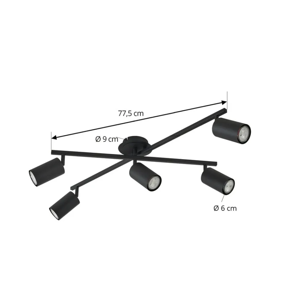 loftlampe Joffrey, 78 cm, sort, 5 lyskilder, GU10^Lindby Hot