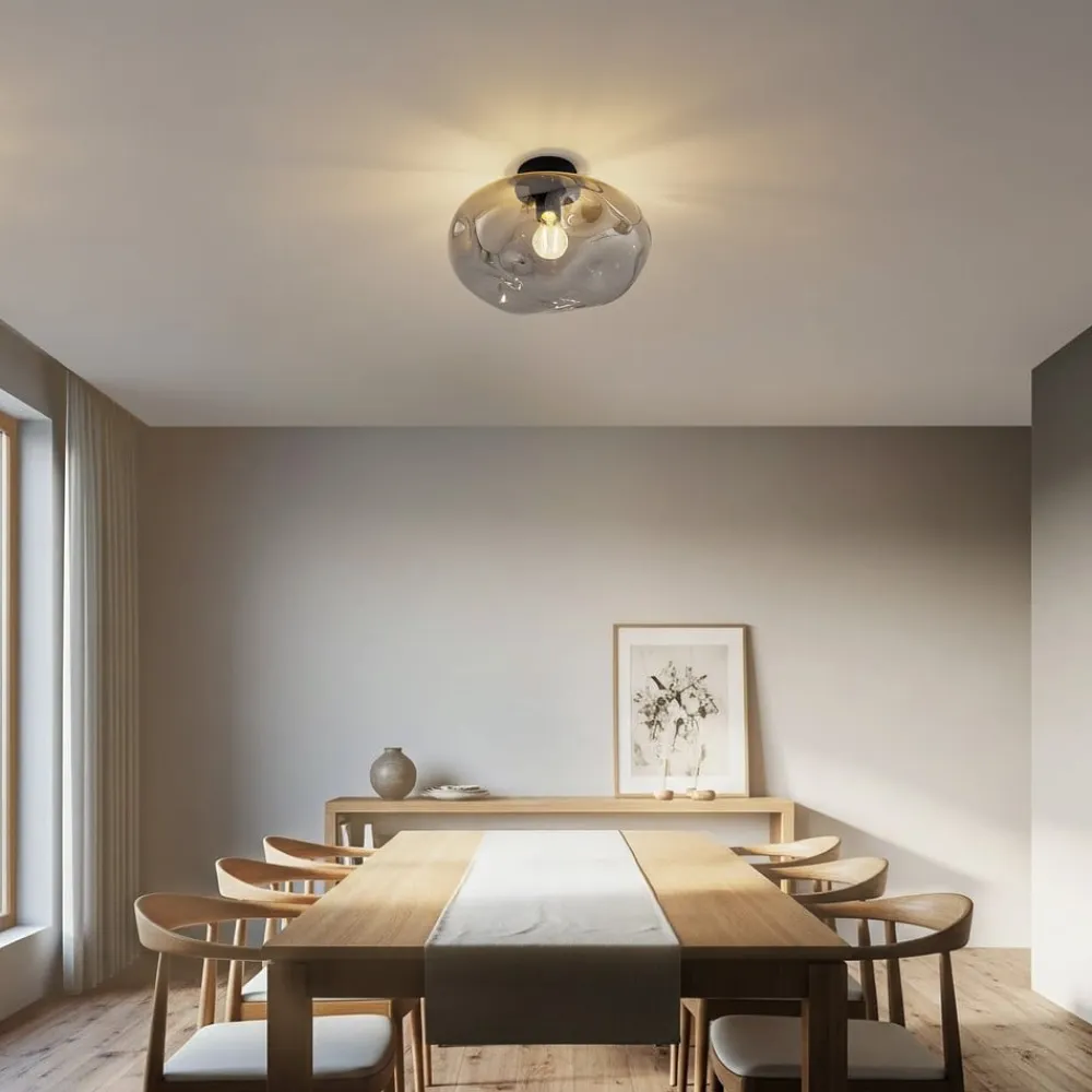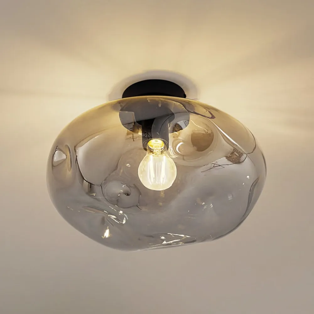 Røggrå loftlampe Lelia med glasskærm