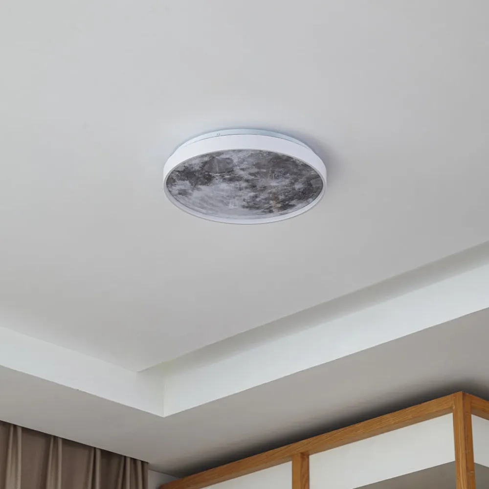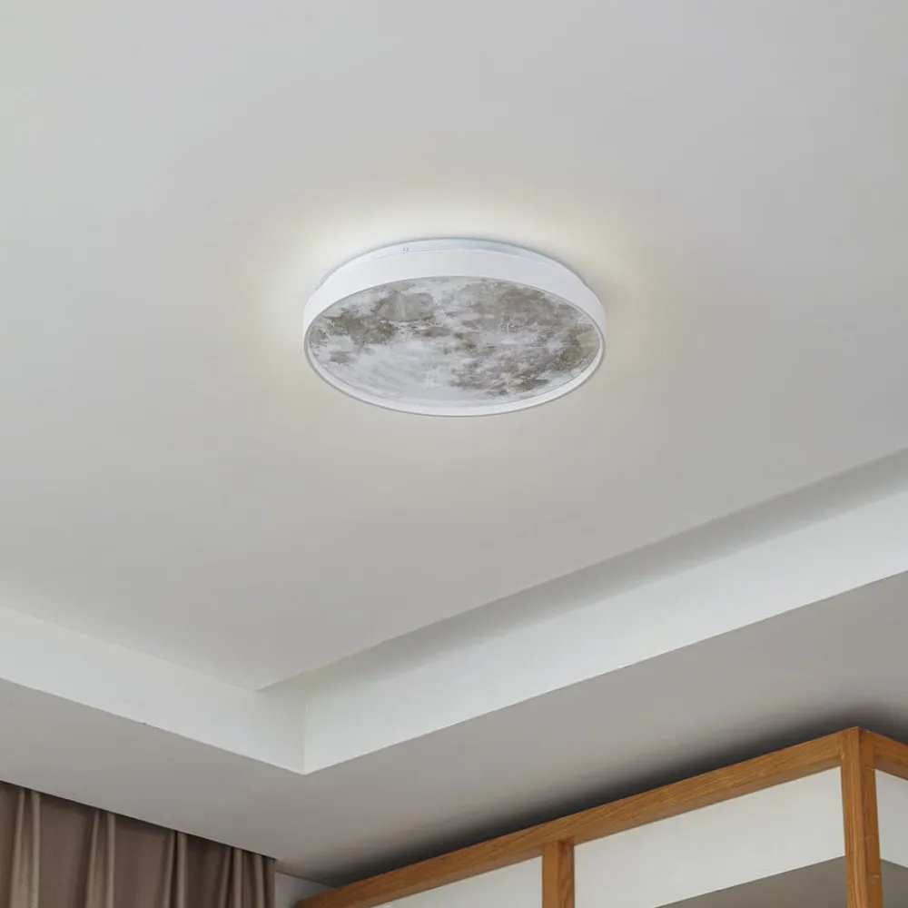 Lune LED-loftlampe – moderne og individuel belysning Lune LED-loftlampen kombinerer dygtigt moderne design med LED-teknologiens effektivitet. Den integrerede LED-lyskilde giver en ensartet og behagelig belysning, der er perfekt til brug i stuer og soveværelser. Loftlampen er lavet af plast i høj kvalitet og imponerer med sin holdbarhed og sit stilfulde udseende. Lune LED-lampens moderne stil passer perfekt ind i moderne indretningskoncepter og bliver midtpunktet i ethvert rum.