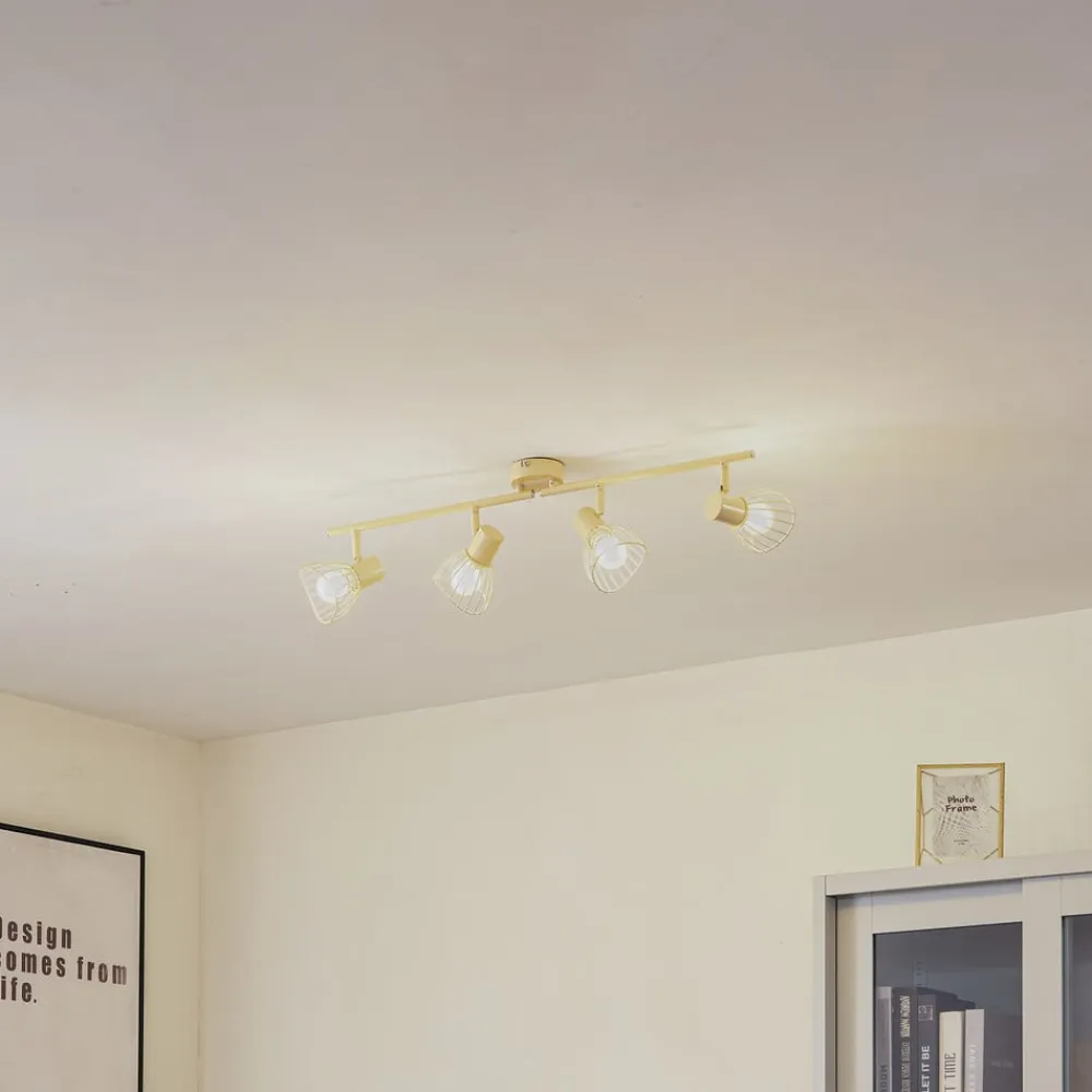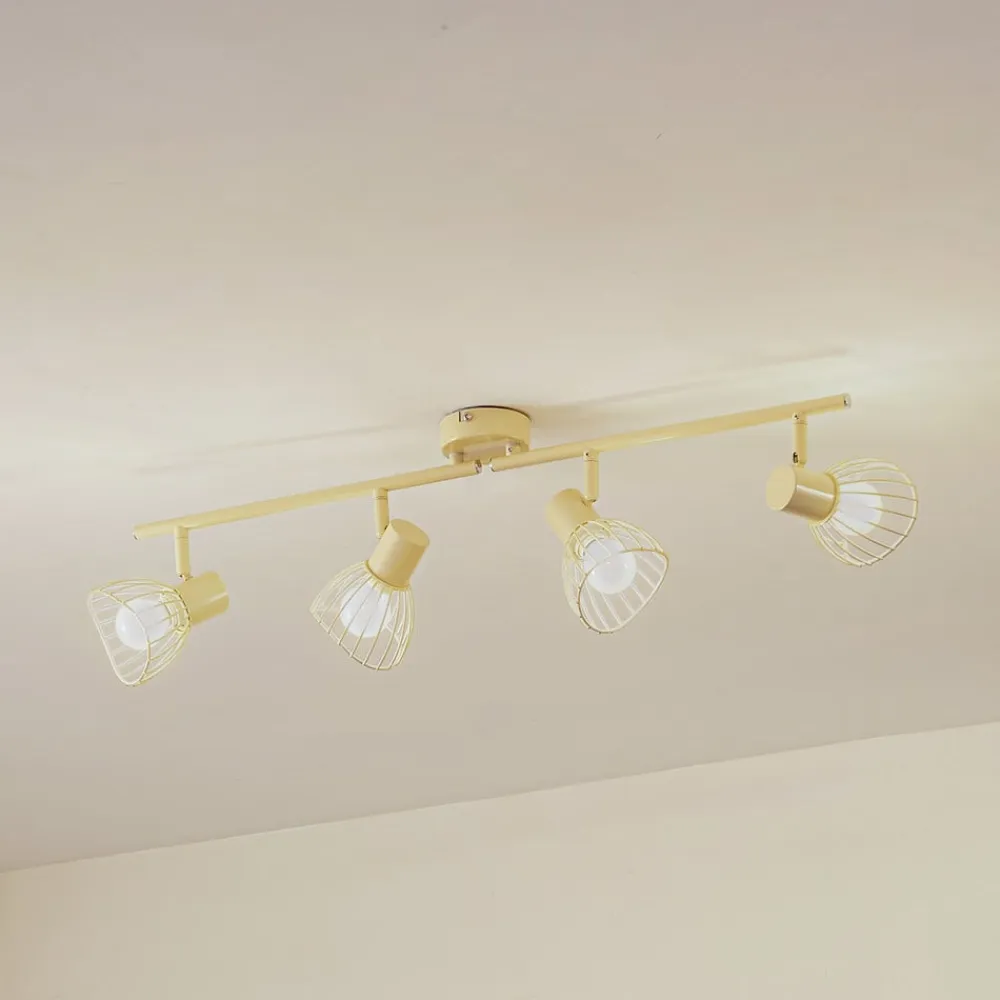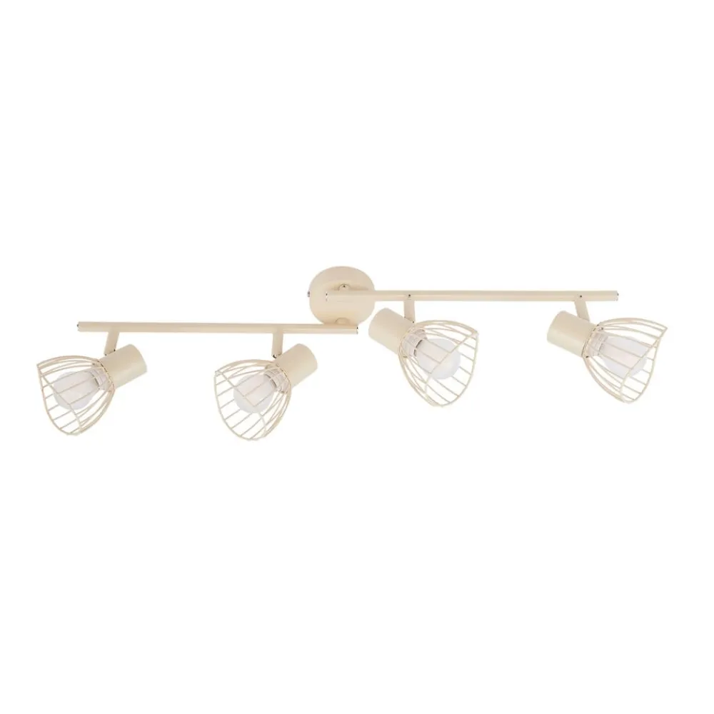 4 lyskilder Piena loftlampe i beigefarvet jern Piena loftlampen, et designstykke med fire lyskilder, kombinerer moderne elegance med skandinavisk enkelhed. Dens beige farve passer problemfrit ind i æstetikken i spisestuen, stuen eller gangen og skaber en atmosfære, der er både indbydende og stilfuld. Lampen er ikke udstyret med en dæmper, men giver mulighed for at styre lysintensiteten individuelt via en ekstern dæmper for at skabe den ønskede stemning (bemærk, at den eksterne dæmper skal købes separat). Med sit klare designsprog og varme farveskema er denne loftlampe et højdepunkt i ethvert rum – lampeskærmene kan svinges 90° og drejes 350°