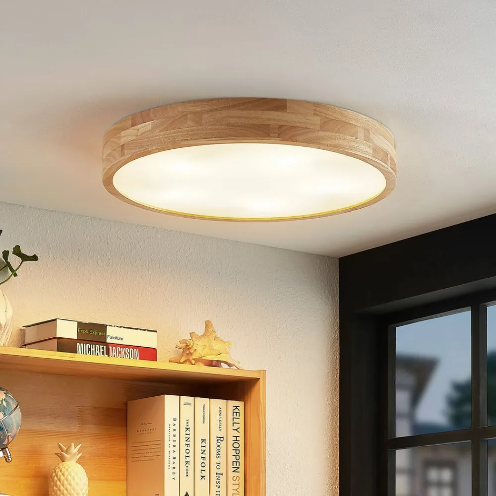 loftlampe Tanju, Ø 60 cm, 5 lyskilder, egetræ, E27^Lindby Best