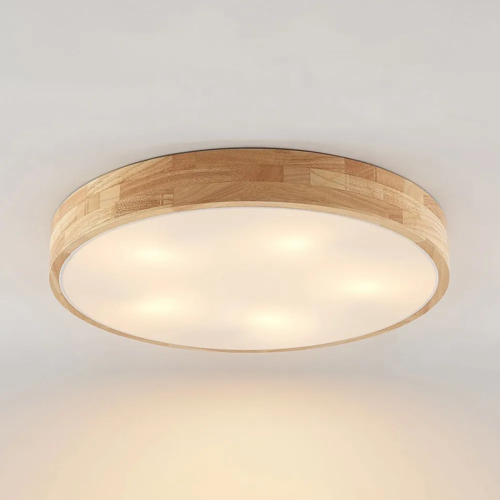 Lindby loftlampe Tanju, Ø 60 cm, 5 lyskilder, egetræ, E27