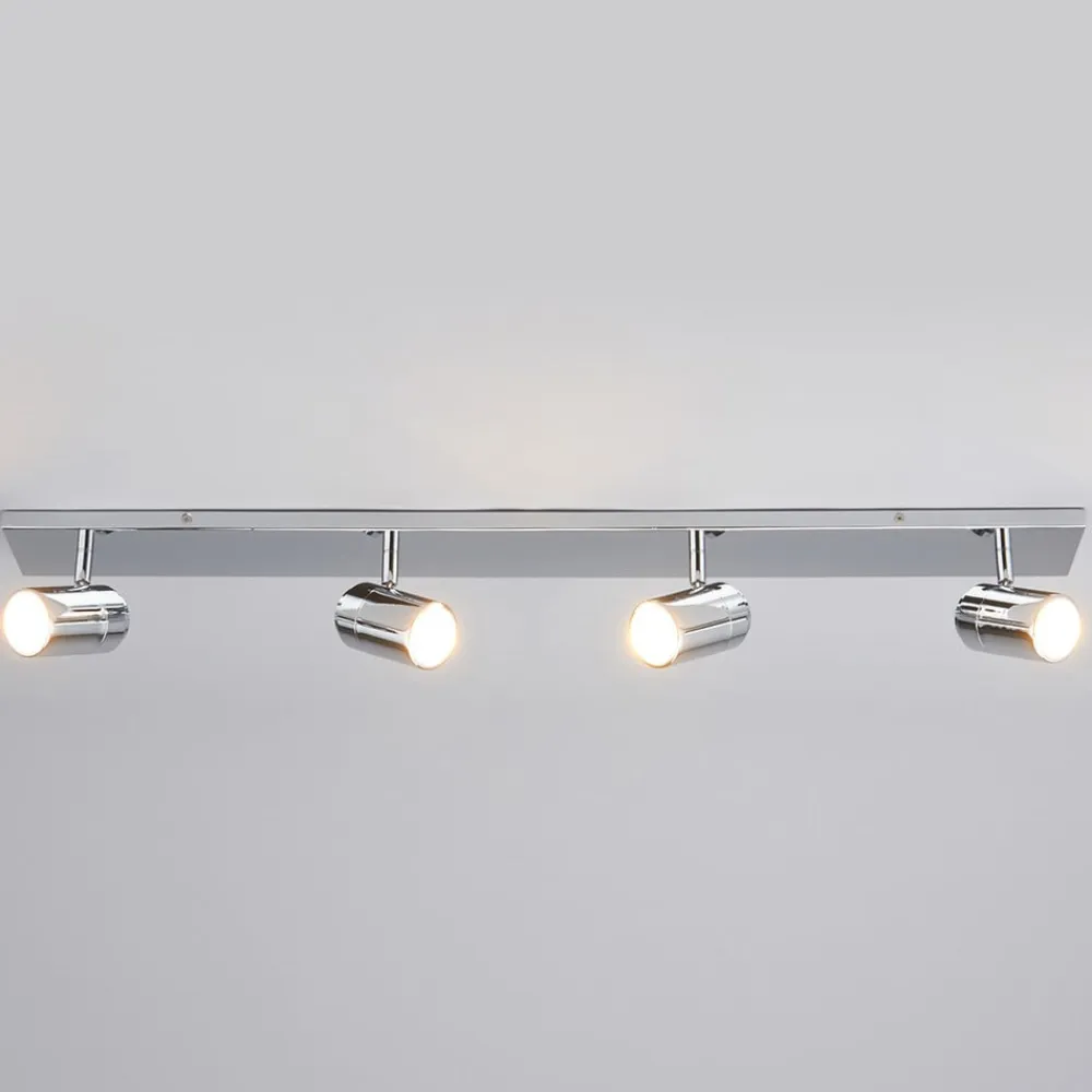 Dejan loftlampe med IP44-beskyttelse Dejan loftlampen kan ikke kun installeres i stuen eller gangen. Den har en IP44-beskyttelsesgrad, så du behøver ikke være bange for at installere den i fugtige rum. Lyskildens lysstyrke bør ikke vælges for sparsomt, især ikke på badeværelset. En 4 lyskilder loftlampe med drejelige spotlights er derfor et godt valg. Takket være det skinnende forkromede design er loftlampen Dejan et moderne belysningsobjekt, der tilfører rummet en vis glamour.