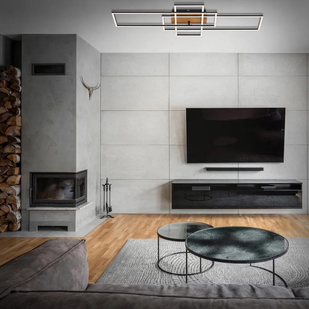 Loftslampe Frame CCT, fjernbetjening, sort/træ