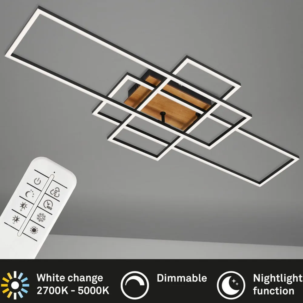 Loftslampe Frame CCT, fjernbetjening, sort/træ^Briloner Hot