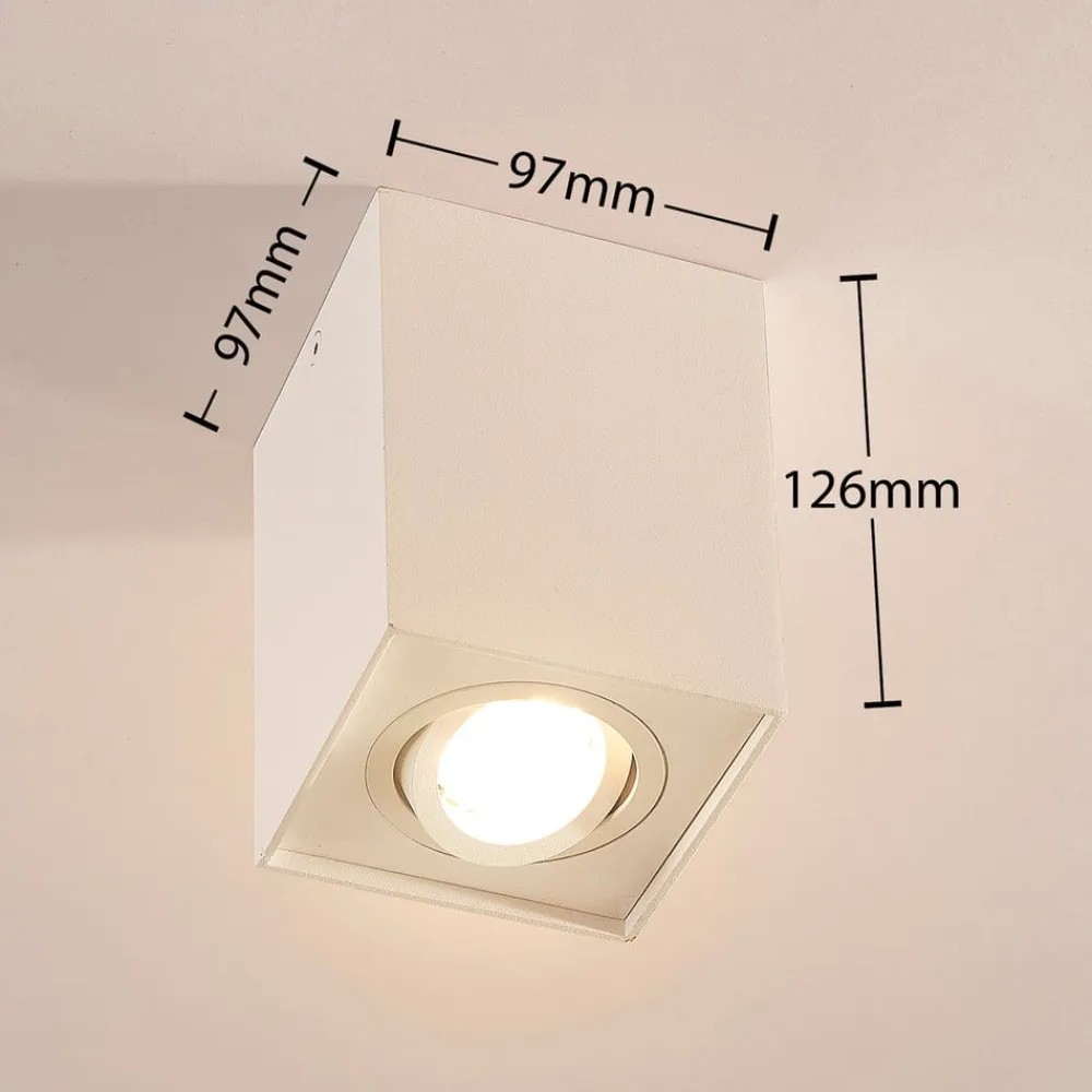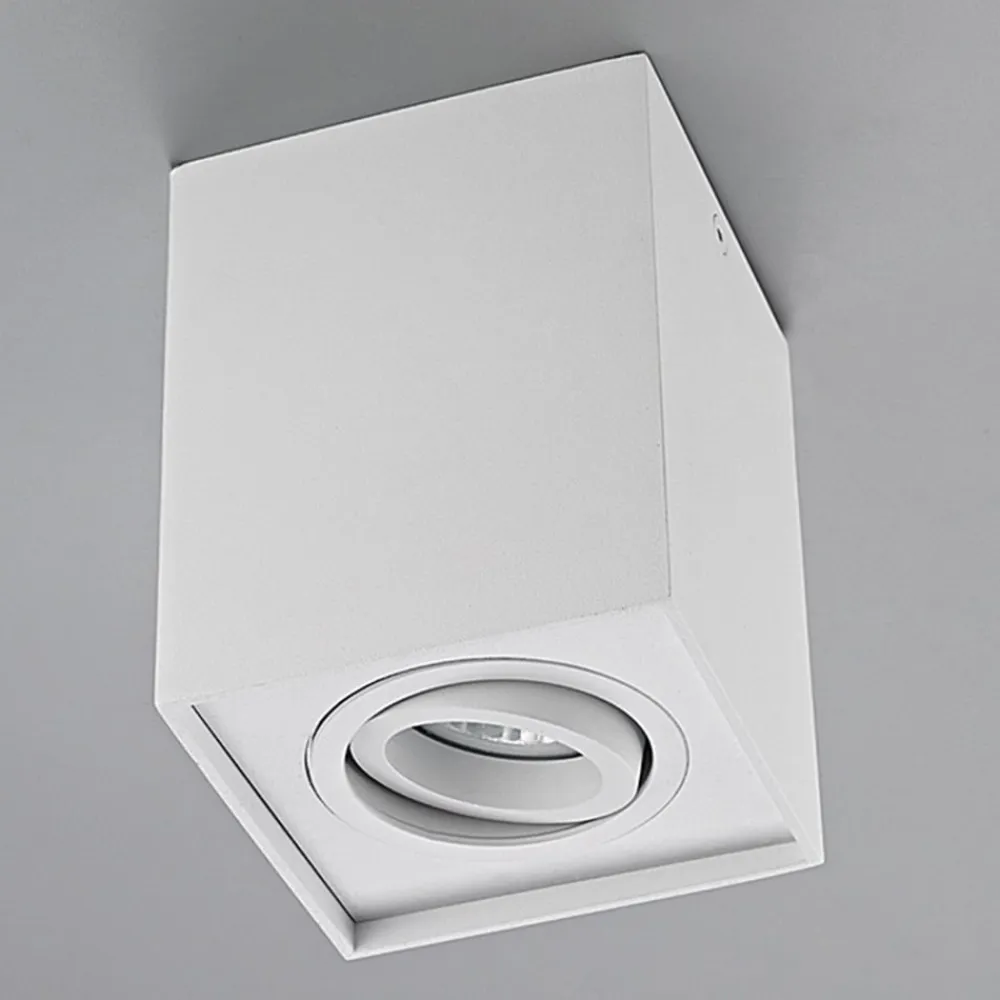 Mat hvid GU10-loftspot Jolina med justerbar indsats i et praktisk sæt med 2 GU10-loftspotten Jolina er lavet af aluminium med en mat hvid finish. Med dette farveskema er der stort set ingen grænser for brugen af den kantede loftslampe, især fordi formen også virker meget tidløs og enkel. Den drejelige indsats bør nævnes som en særlig egenskab ved Jolina, da den sikrer mere individualitet, når lyset rettes. GU10-loftsspotten kan bruges mange steder og er f.eks. ideel til køkkener, korridorer og studierum – med skrueløs hurtigkoblingsklemme af høj kvalitet (holdbar, sikker og værktøjsfri fjedermekanisme)