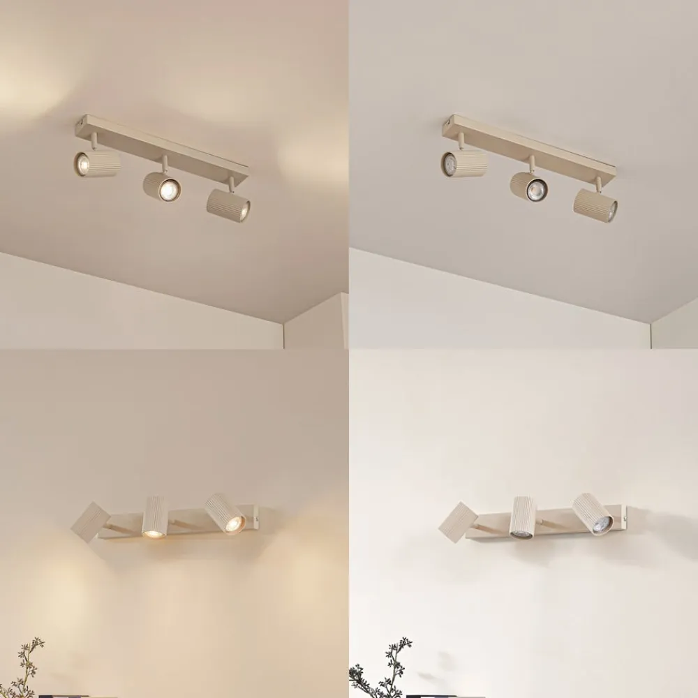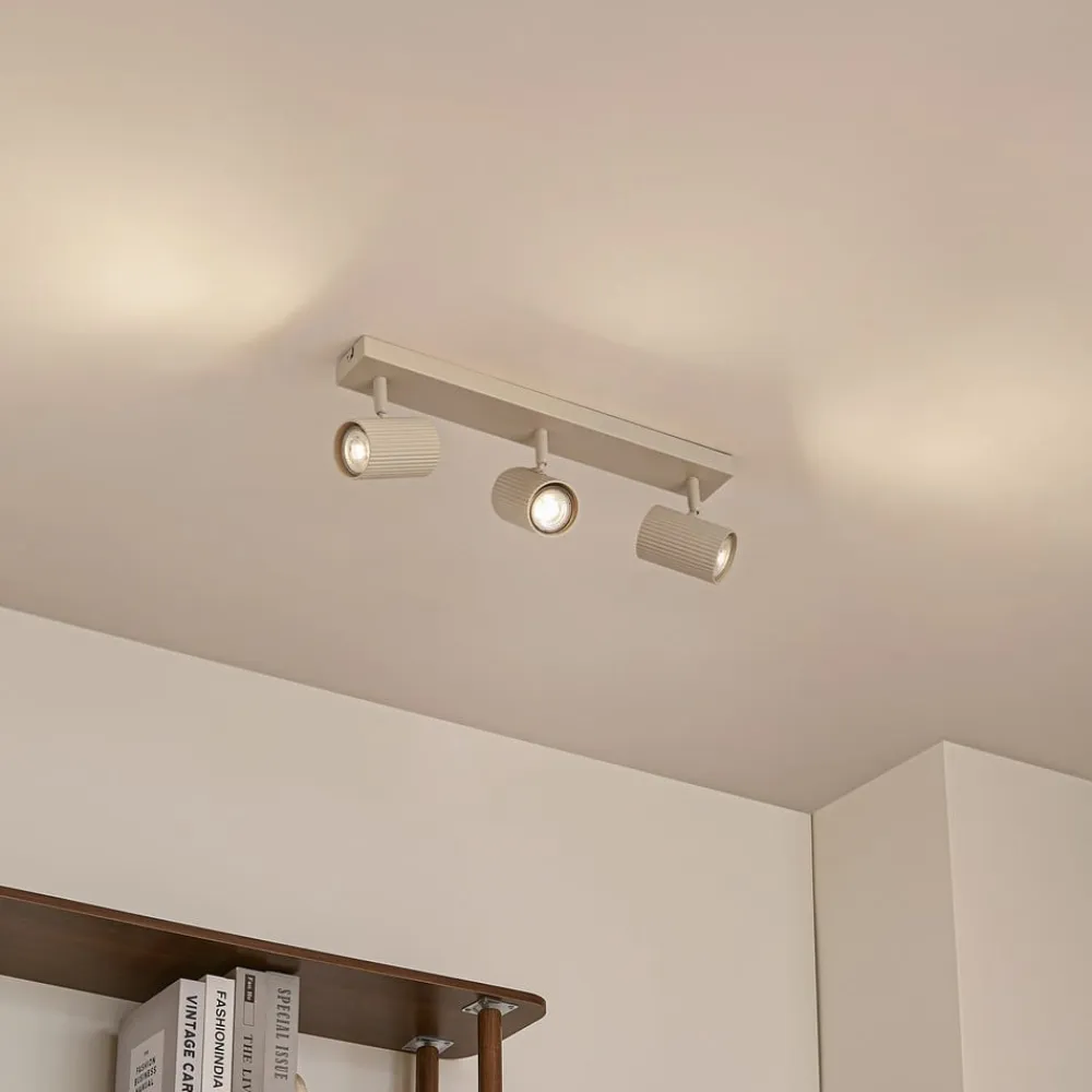 Lindby loftlampen imponerer med sit moderne design og brugen af kvalitetsmaterialer som aluminium og jern. Med sin diskrete beige farve passer den perfekt ind i forskellige indretningsstilarter og sætter stilfulde accenter i entreer og stuer. Konstruktionen med 3 lyskilder sikrer en jævn belysning og skaber en behagelig atmosfære, som takket være de bevægelige skærme kan rettes præcis derhen, hvor der er brug for det.