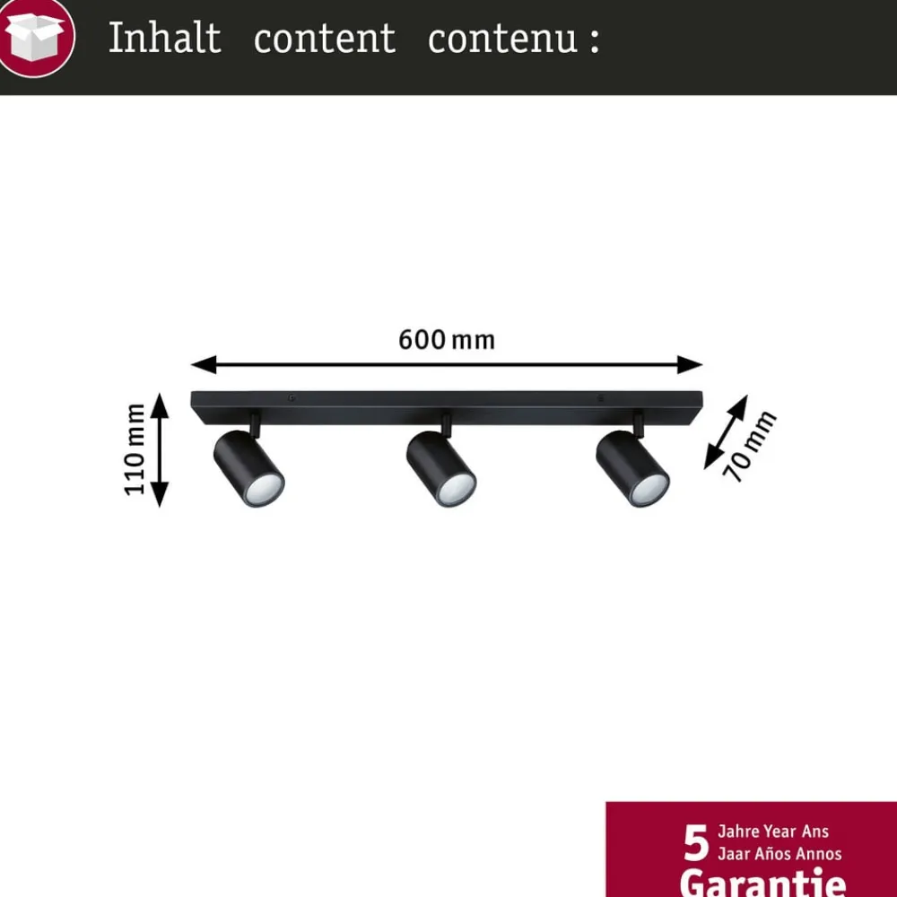 Loftspotten Zyli fra Paulmann kombinerer moderne design med funktionel belysning. Spotten er fremstillet af højkvalitetsmetal i et elegant sort mat design og passer perfekt ind i forskellige boligområder. Uanset om det er i badeværelset, stuen, spisestuen, gangen eller køkkenet – spotten med 2 lyskilder sikrer en målrettet og jævn belysning.