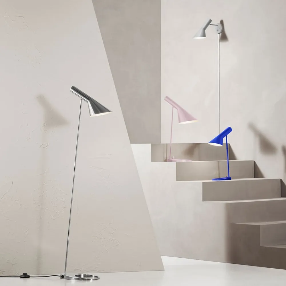 Designergulvlampe AJ – justerbar lysretning AJ-gulvlampen er i dag en designklassiker, der blev skabt af den danske arkitekt og designer Arne Jacobsen tilbage i 1957. Som en del af sit overordnede koncept for SAS Royal (Radisson) Hotel i København udviklede Jacobsen armaturserien, der er opkaldt efter sin kreative skaber. Nogle elementer i dette hotelinteriør er blevet sande designikoner, herunder den puristiske gulvlampe AJ. Beskuerens fokus drages mod skærmen, der er designet som en kegle i den nederste del og som en cylinder i den øverste del, hvilket naturligt former det udsendte lys. Skærmens retning kan justeres, så lyset rettes i den ønskede retning. Skærmen er hvidlakeret på indersiden, hvilket sikrer ideel refleksion og effektiv lysudsendelse. AJ-gulvlampen er et produkt fra den danske belysningsproducent Louis Poulsen, som siden grundlæggelsen i 1874 har præsenteret lys i sin smukkeste form. Louis Poulsen er en pioner inden for skandinavisk design og tilbyder armaturer baseret på princippet om, at “form følger funktion”.