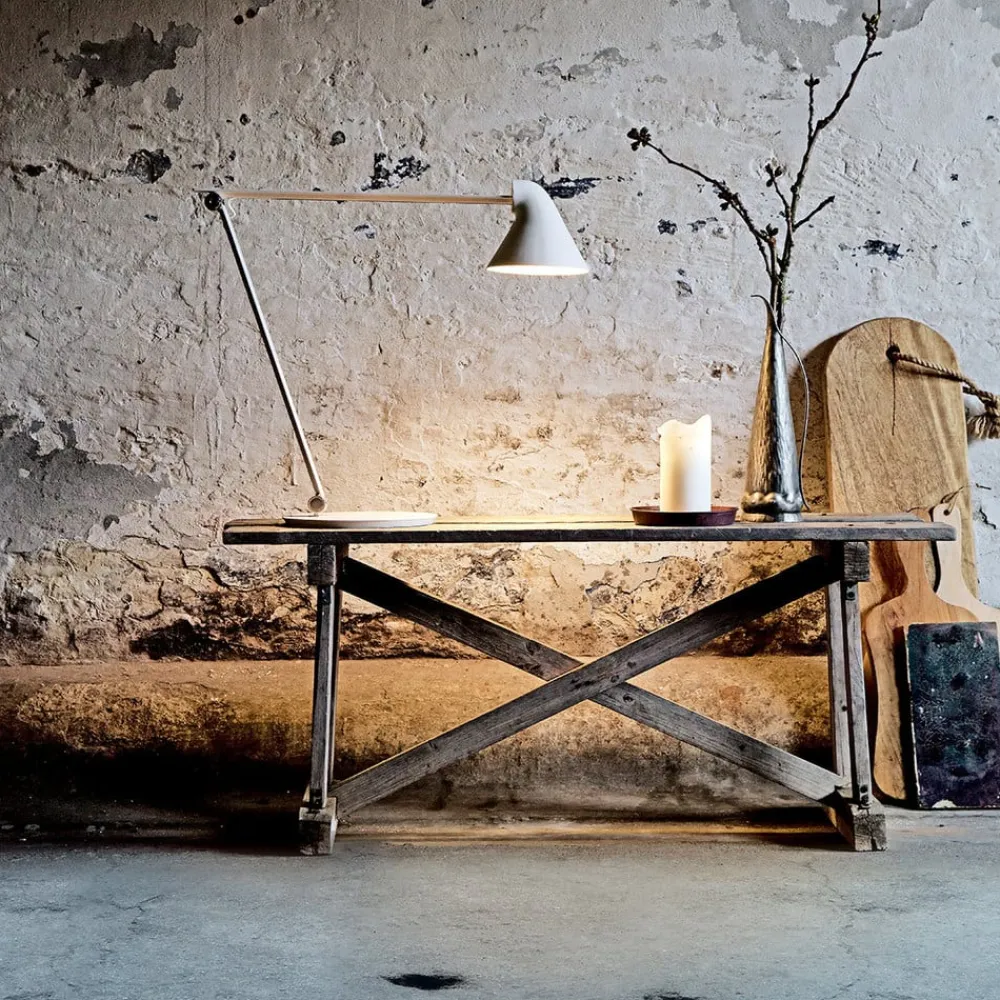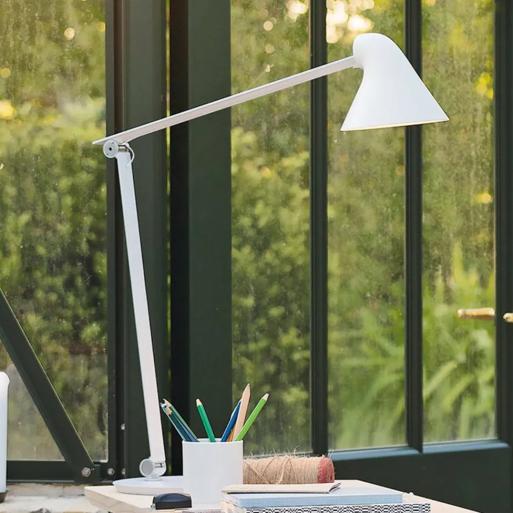 LED-bordlampe NJP – klassisk design møder moderne funktionalitet Designeren Oki Sato og hans japanske designstudie nendo har skabt en bordlampe, der er uden sidestykke. NJP er en nyfortolkning af den klassiske arkitektlampe og er udstyret med to led, der giver mulighed for fleksibel justering til den optimale position. De synlige fjedre i armleddene har et let industrielt look. Hovedet kan også justeres trinløst gennem den bageste skærmåbning mod armen, mens den integrerede LED-enhed er optimalt ventileret. NJP udsender blændfrit, horisontalt lys. Samtidig reflekteres det via den bageste del af det ergonomisk formede armaturhoved, som også oplyser den øverste del af armen. Skærmens inderside er hvidmalet for optimal lysrefleksion, og to lysstyrkeniveauer kan indstilles via en kontakt på hovedet, og en 4- eller 8-timers timer er integreret. En ideel arbejdslampe, der ikke lader noget tilbage at ønske med hensyn til design og funktion. Den danske armaturproducent Louis Poulsen, der primært følger devisen “form følger funktion”, går anderledes til værks med dette produkt fra designstudiet nendo, hvor det minimalistiske udtryk indeholder små tegn og detaljer, der vækker minder.