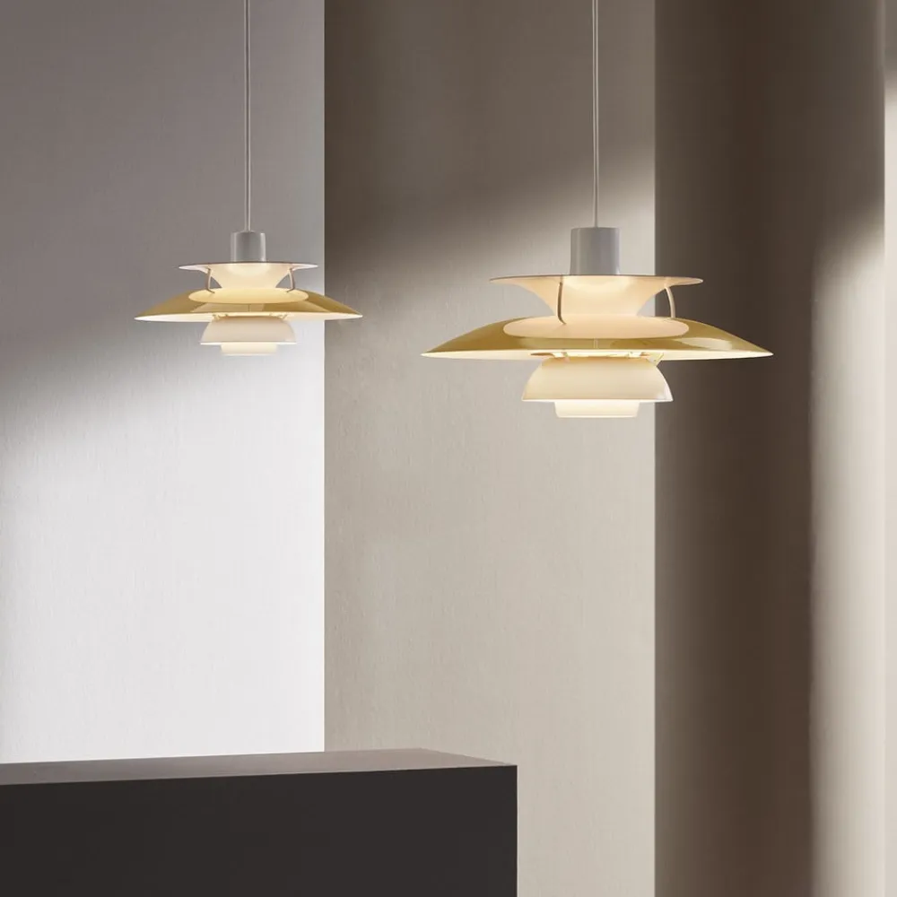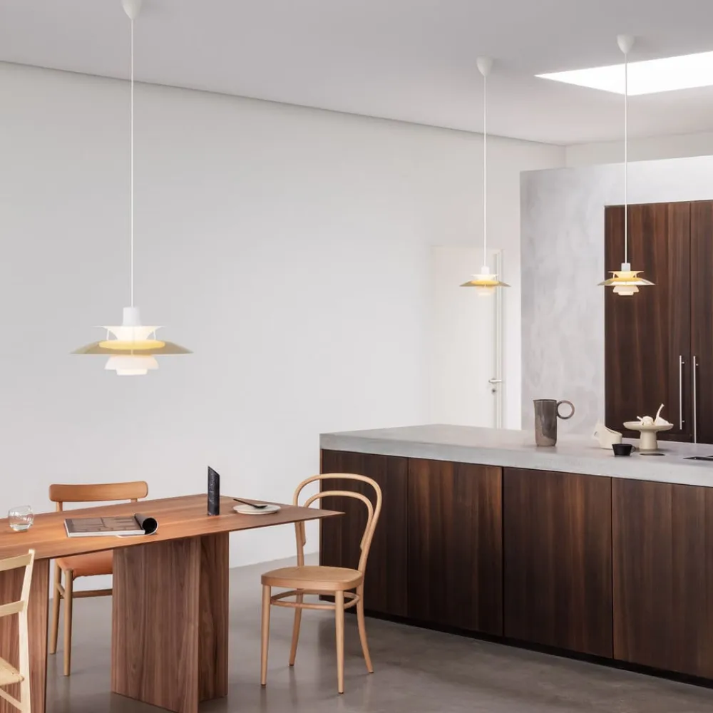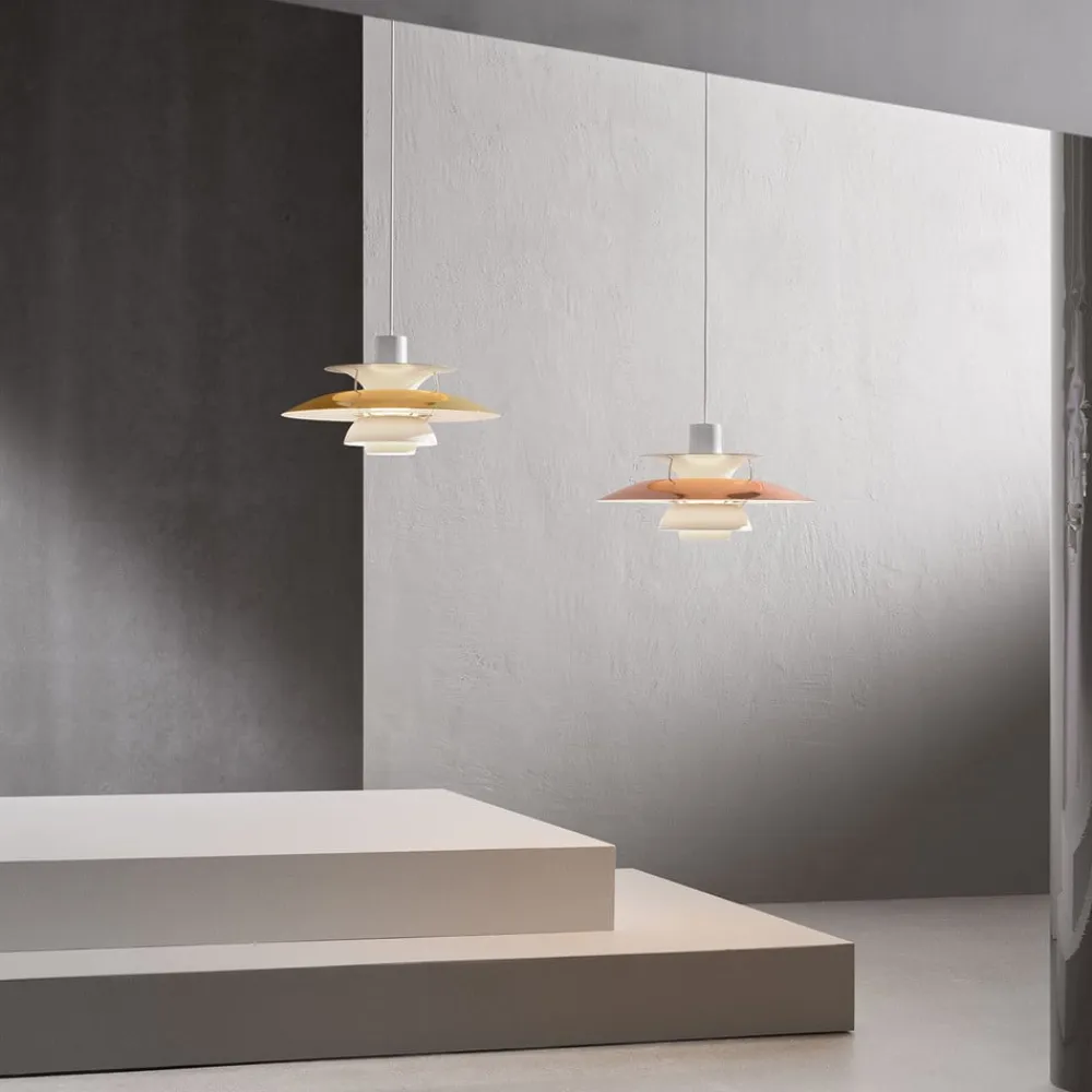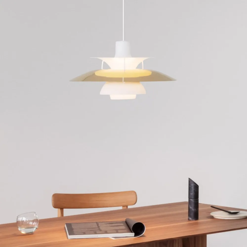 Hængelampen PH 5 Mini er så at sige lillesøster til PH 5, som blev etableret i 1958. Det er et armatur med et flerskærmssystem lavet af metal, der muliggør fuldstændig blændfri lysgengivelse. Den danske designer Poul Henningsen, der arbejdede sammen med producenten Louis Poulsen fra 1925 til sin død i 1967, lagde grundlaget for lysteorien med PH 5 ophængslampen, der stadig bruges der.