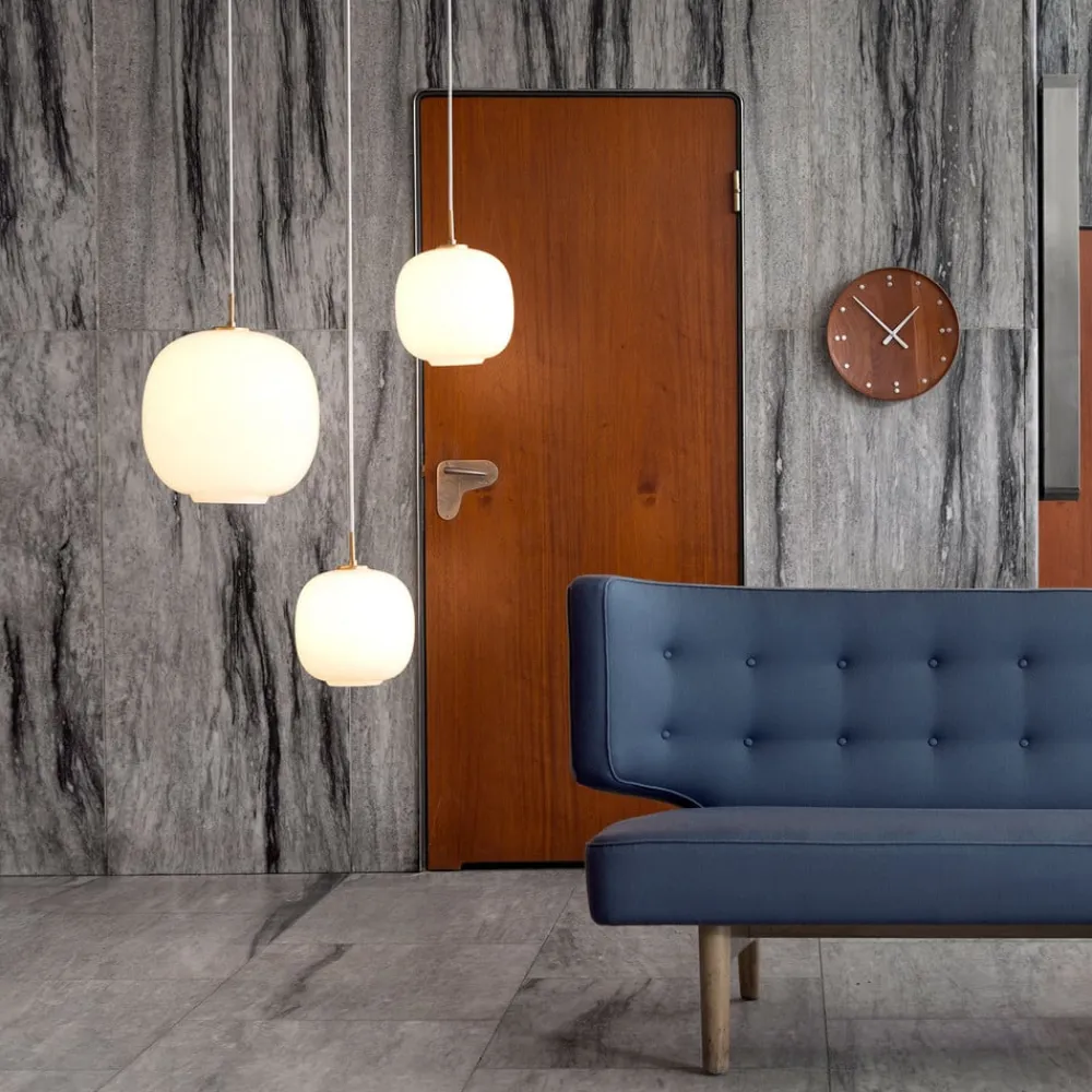 Den berømte danske arkitekt Vilhelm Lauritzen designede i 1940’erne lamper til radiohuset i København. De færdige hængelamper oplevede i 2016 en renæssance hos den danske producent Louis Poulsen under navnet VL45 Radiohus i det originale design og med de oprindelige materialer.