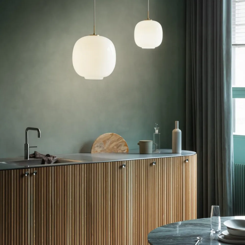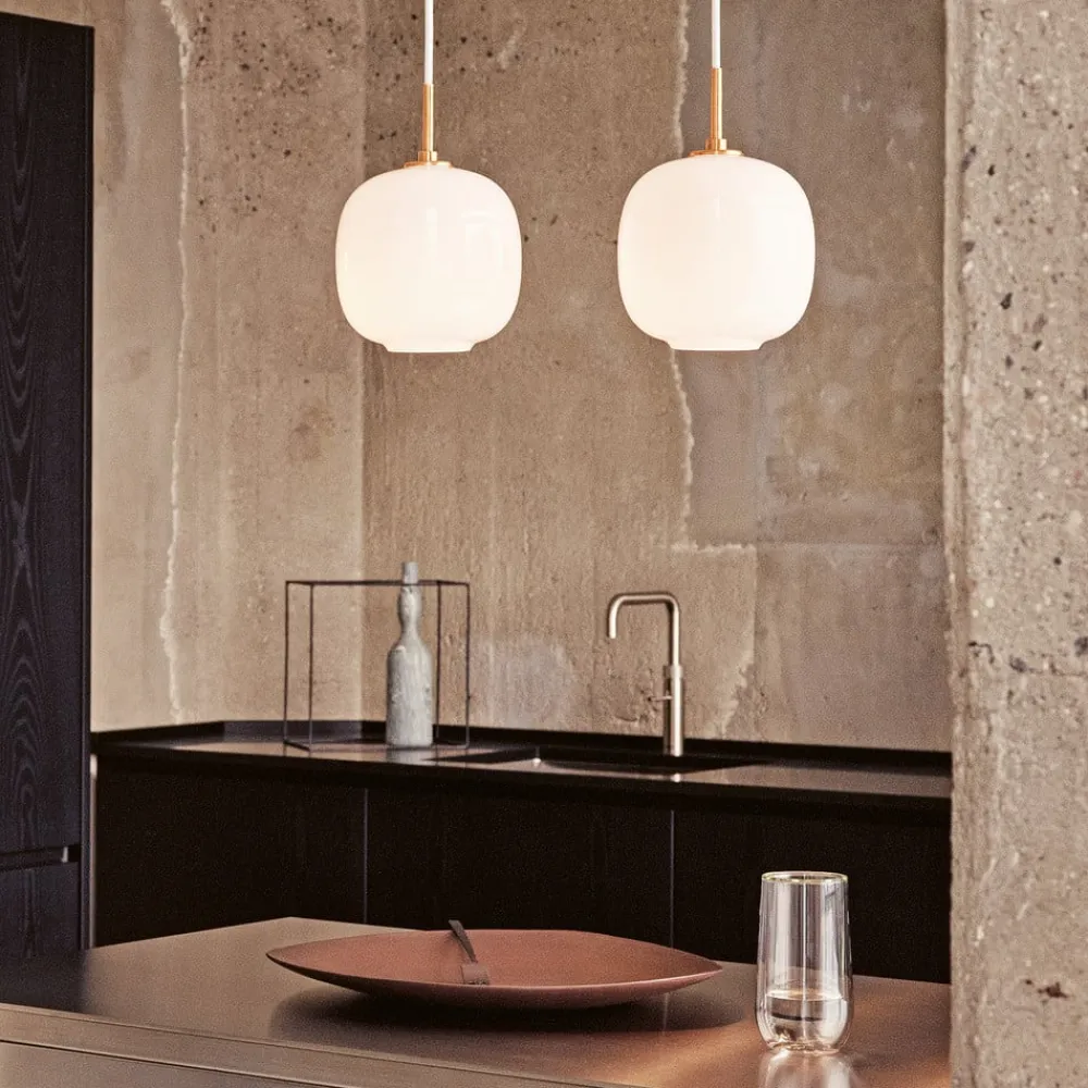 Hængelampen har en skærm af mundblæst opalglas, der består af tre lag: Den indre og ydre lag er af gennemsigtigt, blankt glas, og det midterste lag er af hvidt glas. Skærmen har en åbning i bunden, der skaber en nedadrettet lyskonus. Opalglaset gennemtrænges desuden blidt af lys, så skærmen lyser op hele vejen rundt og skaber en varm og indbydende atmosfære.