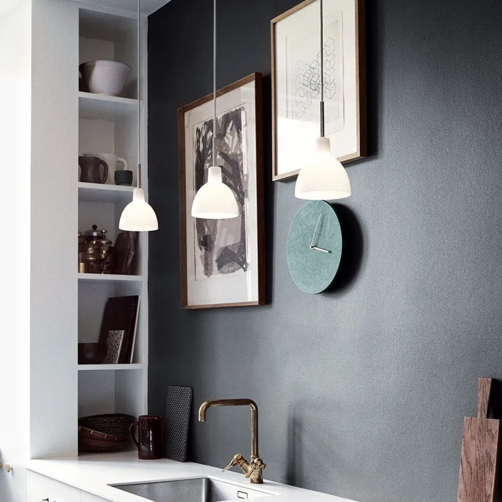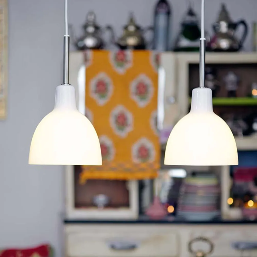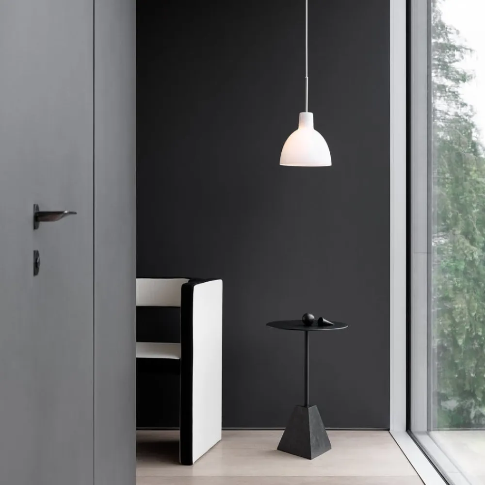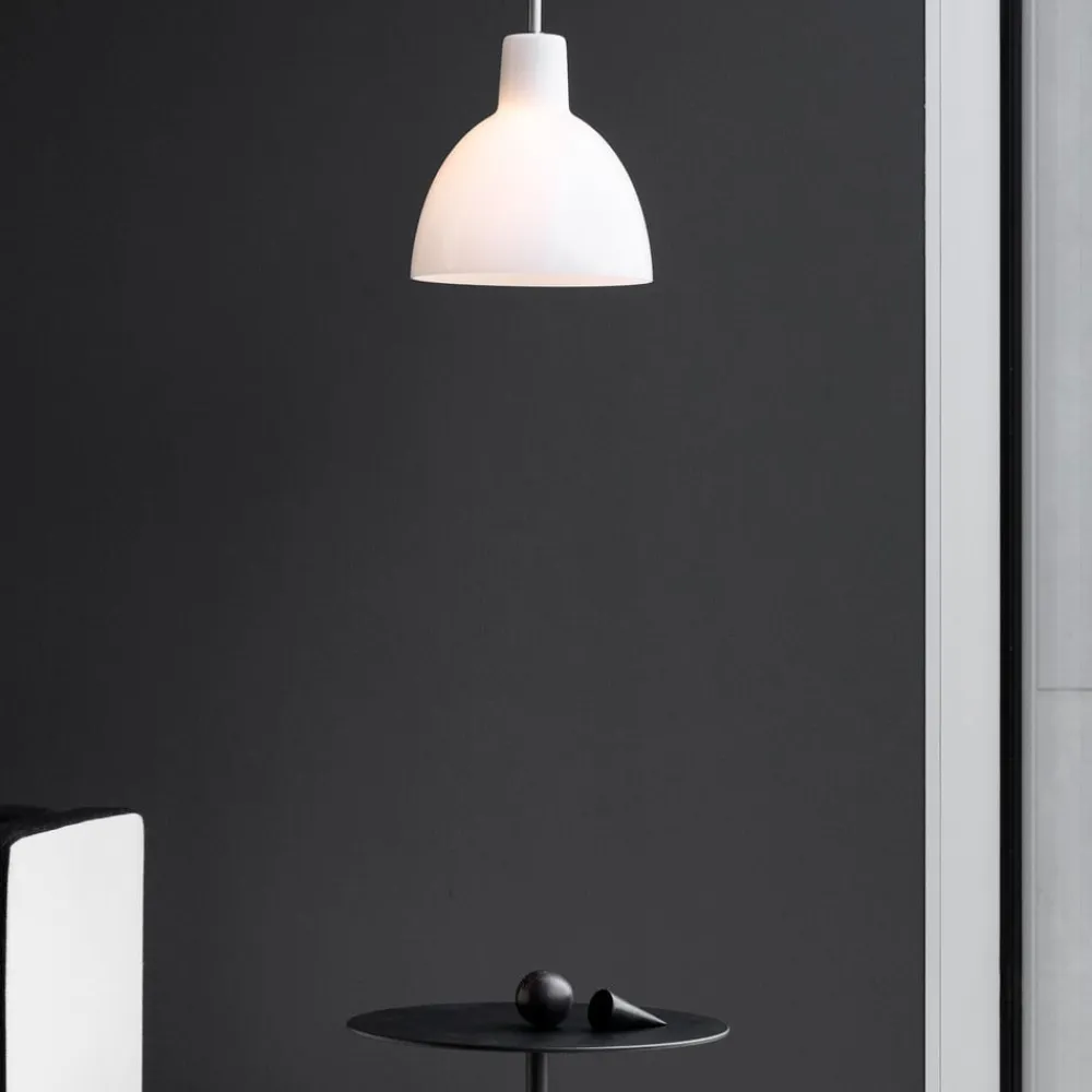 Pendellampen Toldbod 155 fremstår særdeles elegant i ethvert rum, også selv om den er slukket. Den enkle skærm i mundblæst opalglas udsender lyset direkte nedad, men udsender også lyset blidt gennem glasset, så den smukke form på lampen fremhæves. Det sikrer en tiltalende lysstemning, der samtidig også garanterer en behagelig atmosfære.
